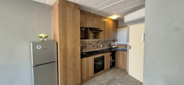 Step into a bright, open-plan living area that flows effortlessly into a newly renovated, modern kitchen, creating a warm and inviting space perfect for both relaxation and entertaining. The generously sized bedroom features built-in cupboards, and the bathroom is neat and practical.