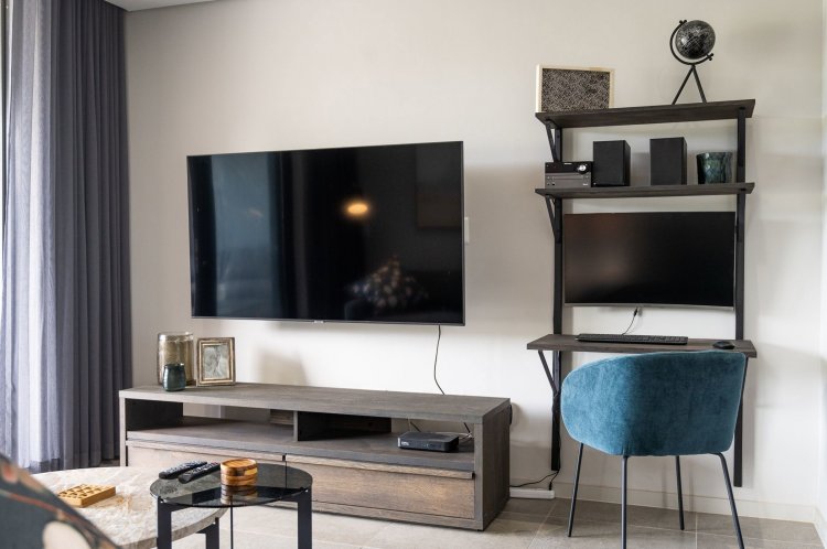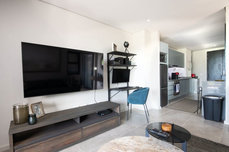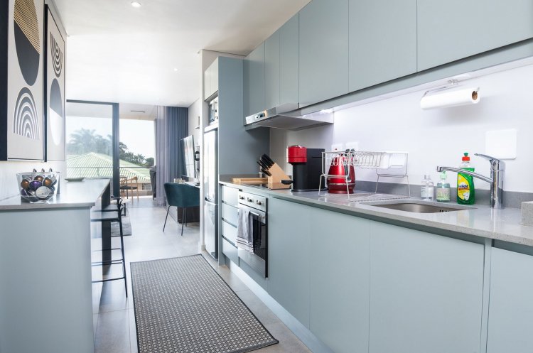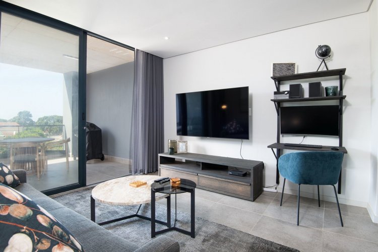 The unit is very spacious with a good sized bedroom with queen size bed, built-in cupboards and aircon. The bathroom is modern with a large shower. There is a super extra spacious open plan kitchen with amazing storage space and breakfast bar. It includes a fridge, dishwasher and microwave. This leads to the lounge area which flows seamlessly out onto the patio through sliding doors.