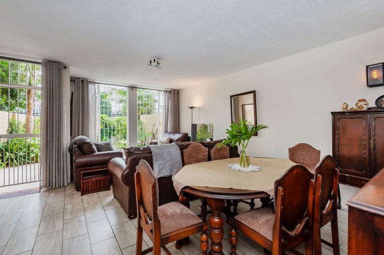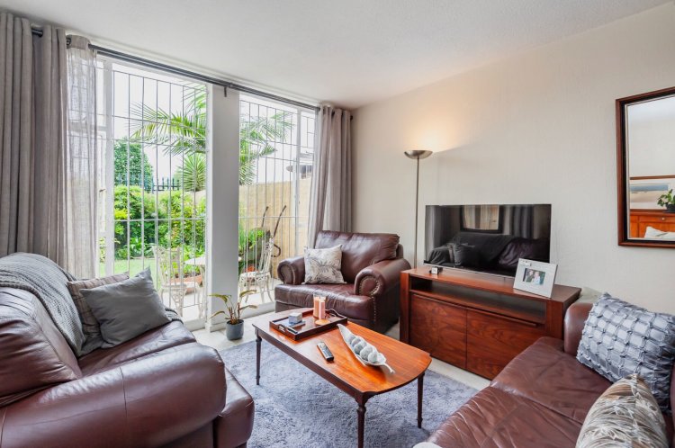 Introducing an exquisite duplex that epitomizes comfort and convenience throughout. It's a realm of sophistication where tranquility and peace of mind meets you in a beautifully landscaped and private garden. The entire ground floor as well as upstairs has neutral, tiled flooring. The back door leads you to your own washing line space. Upstairs you are welcomed by 2 very cozy sun-filled bedrooms. The main bedroom has double BIC's and opens up onto a balcony, overlooking the private park. The unit has a guest toilet downstairs and a full bathroom upstairs with a toilet, basin and bath/shower combination unit. The custom crafted fully-fitted modern kitchen comes complete with ample culinary space and space for 3 appliances. As a bonus, the owner will leave behind the custom made curtains in the lounge and blinds in the kitchen and bathrooms, as well as the hosepipe in the garden. For entertainment, the sparkling communal swimming pool creates the perfect ambience for family gatherings surrounded by green grass and benches to set up those memorable picnic days. Additionally, the complex shares a park space with the neighboring complex, the residents utilize this park for running, exercising and relaxation purposes. This park is secluded and fenced off with a private entrance for residents only. Security is prioritized with an electric remote controlled entrance gate, one fully automated garage and security guards operating 24 hours, at the gate, in and around the complex. CCTV Cameras are also installed The Complex has painting maintenance on the go at the moment. Popular schools, Cresta Mall and Heathway Shopping Centre, which also has Medical Doctors and Dentists rooms as well as other essential amenities are in close proximity to this duplex. If you are interested in viewing this property, you are most welcome to contact me. Levies: Levy R3399.00 CSOS Levy R40.00 Special contribution R243.41 Garage R80.85 Effluent: R802.39 Reserve Levy R195.00