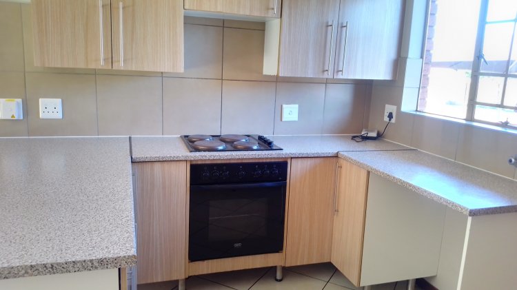 The kitchen is a highlight, featuring ample space for two appliances, including a dishwasher and a washing machine.