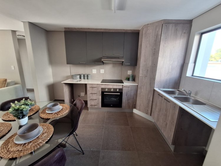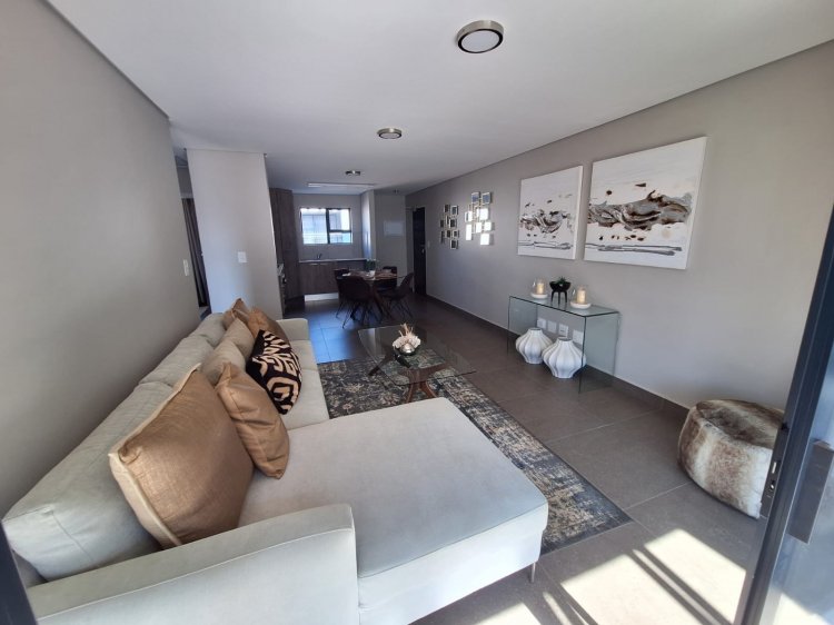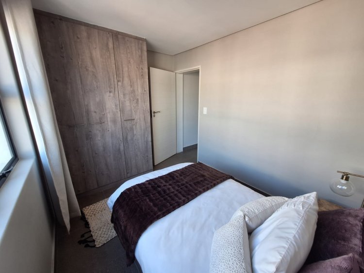 Property Features: 2 Spacious bedrooms with built-in cupboards 1 full Bathroom – separate toilet for added convenience Open-plan kitchen with granite countertops, double sink, extractor fan & oven Stylish open-plan living and dining area Private balcony with built-in braai – perfect for relaxing or entertaining Tiled throughout with quality modern finishes 1 Covered parking bay included Prepaid electricity & modern energy efficiency