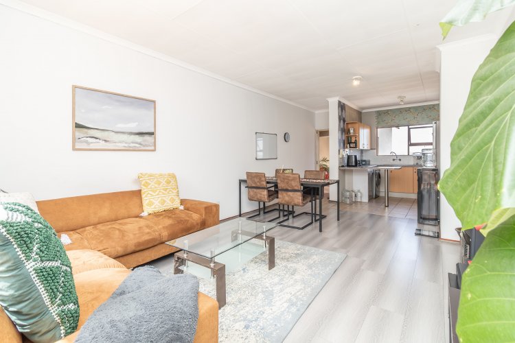 Property Features: • 2 Spacious Bedrooms with built-in cupboards. • Two contemporary bathrooms, both with shower and bath - clean modern finishes. • Open-plan living and dining balcony with fantastic views. • Laminate flooring throughout living area. Carpets in bedrooms. • Well-equipped kitchen with floor tiles, space for appliances. • Lovely private balcony. • Emphasis on location and security, complex with 24/7 access control. • 1 undercover parking with ample visitors parking.