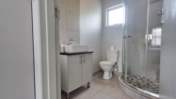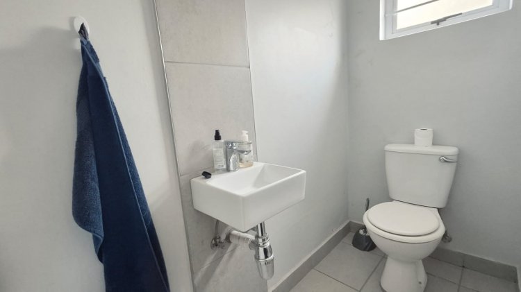 PROPERTY FEATURES • 2 neat bedrooms, both with en-suite bathrooms o One en-suite with a bathtub o One en-suite with a shower • Separate guest toilet downstairs • Open-plan kitchen, dining, and living area • Sliding door leading to an outdoor built-in braai area • Small, low-maintenance backyard with washing line • 2,500-litre JoJo tank with pressure pump • Small storeroom