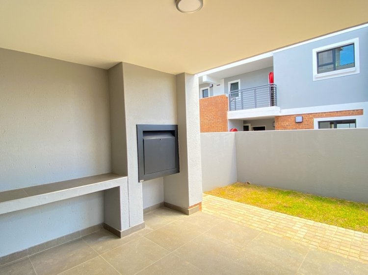 Property Features: 2 spacious bedrooms with ample built-in cupboards Modern full bathroom with bath, shower, basin & separate toilet Fully tiled throughout – clean and low maintenance Ultra-modern kitchen with granite tops, pantry, hob, oven & extractor fan Private covered patio with built-in braai Lush green garden – perfect for relaxing or entertaining