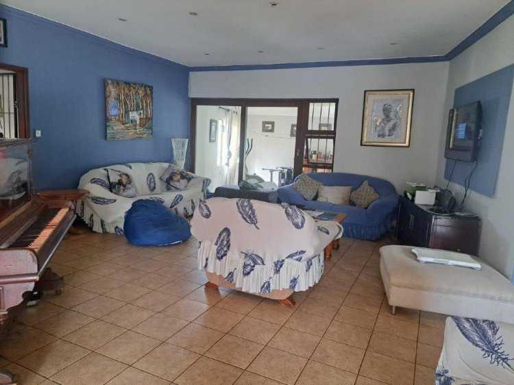 A large volume home with 2 lounges, 5 bedroomed house with 4 bathrooms, 4 garages, a storage area, a swimming pool, a one bed freestanding cottage and 2 staff houses.
