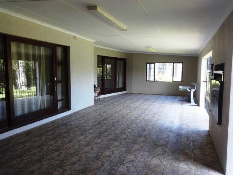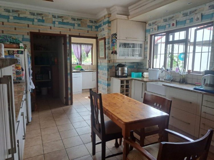 A large modern kitchen with, an eye level oven and gas hob and granite tops. A small pantry as well as a small scullery just off the kitchen. Small lounge and dining room and large enclosed front verandah/living room which extends into the 4 car garage. Ideal for hosting large family functions. A study and separate shower and loo which can convert easily into a self sufficient flatlet.