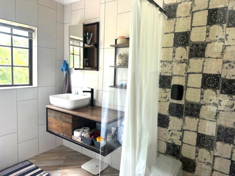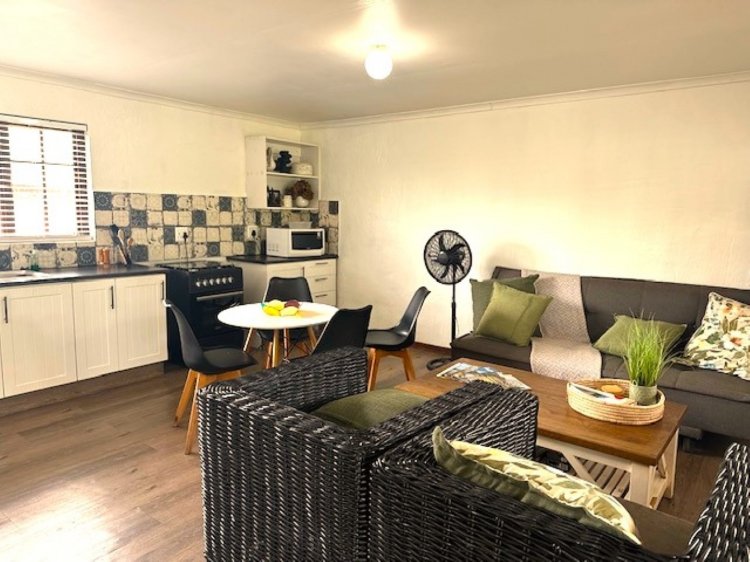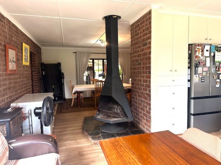 The main house has been upgraded, changes have been made to the kitchen, new bathrooms and cupboards. The floors are top quality vinyl and there are carpets in the upstairs bedrooms. There are 2 bedrooms upstairs and 3 downstairs. There are 3 bathrooms, main en suite and a guest toilet. The kitchen flows into the dining area with a large fireplace and into the lounge which also has a fireplace.