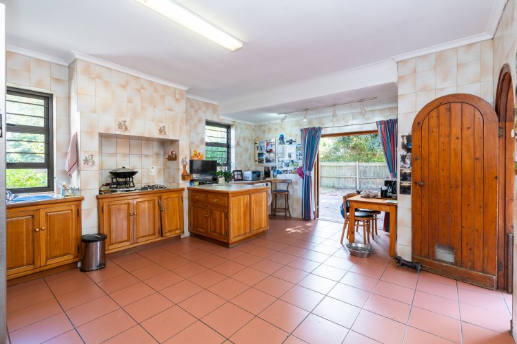 The main home features three well-proportioned bedrooms and two bathrooms, complemented by a large eat-in kitchen ideal for family living. A generous formal lounge flows seamlessly into the dining room and onwards to an enclosed patio, overlooking the expansive rear garden and pool area — perfect for entertaining and relaxed indoor-outdoor living.