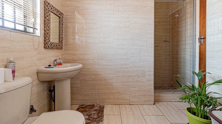 This home features extras that make it an ideal property, these include battery operated inverters, solar panels with lithium batteries, alarm system, cctv cameras, fibre ready, automated gate, automated drive through garage that accommodates 2 vehicles and plenty parking space for another 7 vehicles. A well-established garden with a sparkling swimming pool in the backyard is such a highlight as well.