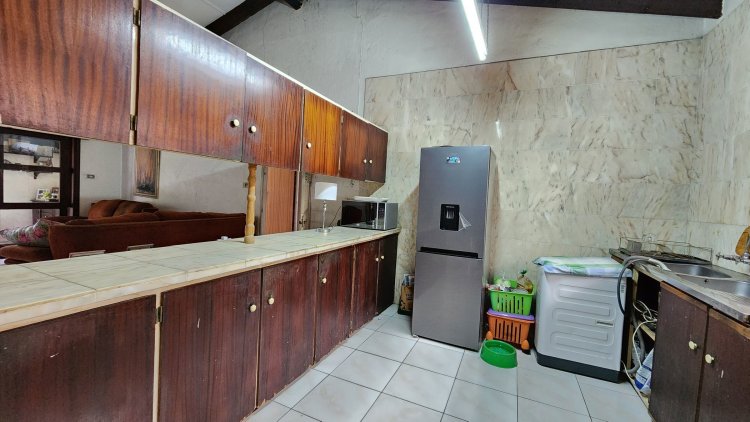 Inside, the home features three comfortable bedrooms, with the main bedroom offering its own en-suite bathroom. A second bathroom services the rest of the home, providing convenience for family living. The open-plan layout connects the kitchen, dining area, and living room effortlessly. Sliding doors separate the living room and dining area, allowing for both open flow and privacy when needed. The kitchen leads out to an enclosed patio—perfect for a laundry area, or a cosy morning coffee spot.