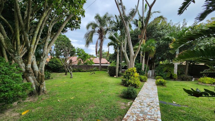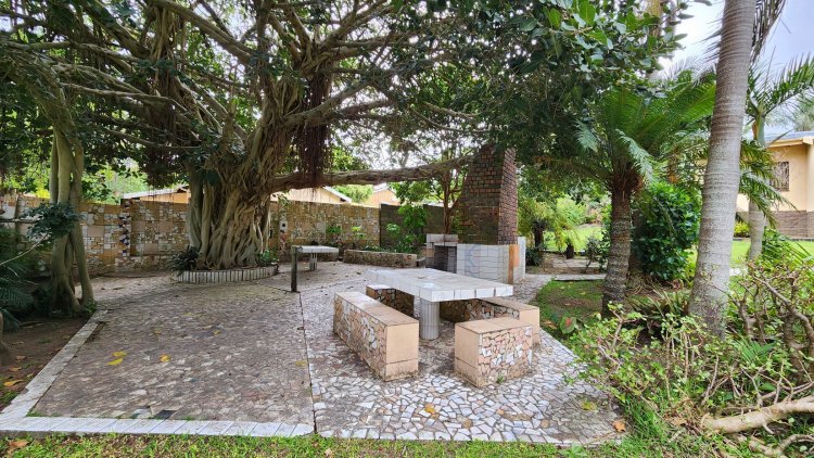 A standout feature of this property is the spacious, pet-friendly backyard. It offers a beautifully crafted braai area with a built-in braai and built-in table finished with elegant mosaic detailing, creating the ideal setting for outdoor entertaining. There is also a practical outside shower, perfect for beach days or rinsing off after gardening.
