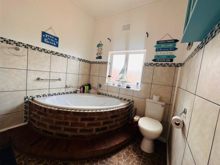 Main House – 3 Bedrooms | 2 Bathrooms    •   Bright, airy and immaculately kept open-plan lounge and dining area.    •   Three generous bedrooms, all with built-in cupboards; the master suite includes an en-suite bathroom.    •   Modern family bathroom featuring a stylish corner bath.    •   Contemporary kitchen with granite countertops, ample cabinetry and seamless flow to the dining/entertaining space.    •   Excellent indoor–outdoor living: large sliding doors open onto the garden and pool area.    •   Air-conditioning units throughout for year-round comfort.    •   Drive-in access through automated gates with secure parking for up to 10 vehicles — ideal for guests, trailers or a boat.