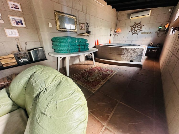 Entertainment Area & Swimming Pool    •   Beautiful covered patio — perfect for all-season gatherings, braais and family relaxation.    •   Expansive, air-conditioned entertainment room complete with a fully fitted pub, jacuzzi and outside loo.    •   Low-maintenance paved and tarred yard with neat, modern finishes.    •   Stunning, fully enclosed swimming pool for private summer enjoyment.
