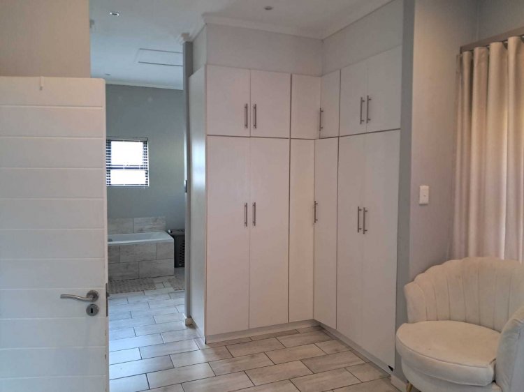 The main bedroom offers a touch of luxury with its en suite bathroom, complete with a his-and-hers basin, a spacious shower, and bath.