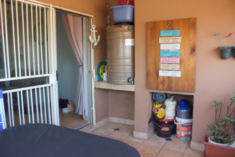Additional highlights include a large double garage, access to communal storage units within the complex, and well-kept surroundings. Ideally located close to schools, shopping centres, and OR Tambo International Airport, this townhouse offers excellent convenience and accessibility.