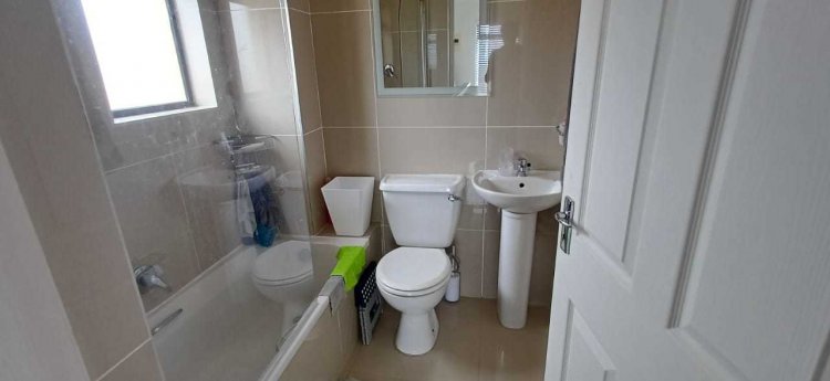 Upstairs, the apartment offers two additional bedrooms and a shared bathroom, also fitted with a bathtub and shower-over-bath.