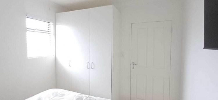 The ground floor features one bedroom, a bathroom with a bathtub and shower-over-bath, and a stylish open-plan lounge that flows seamlessly into a modern kitchen. Just outside the kitchen, you’ll find a spacious private yard, ideal for outdoor relaxation or entertaining.