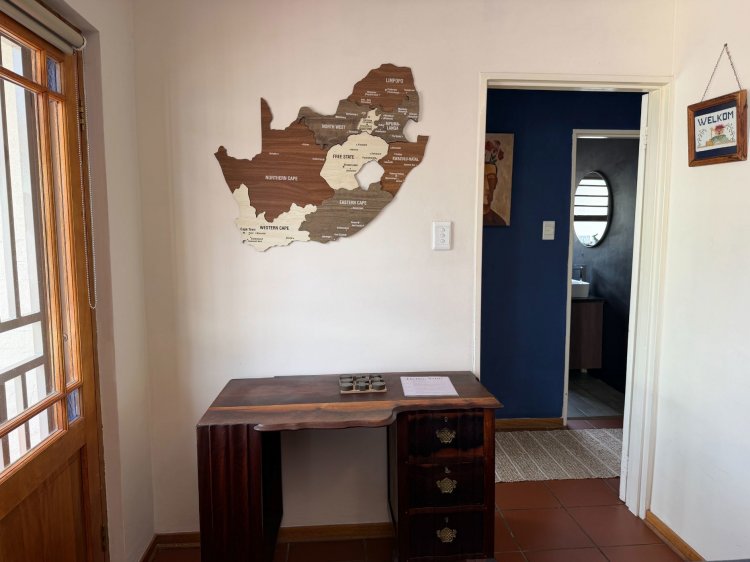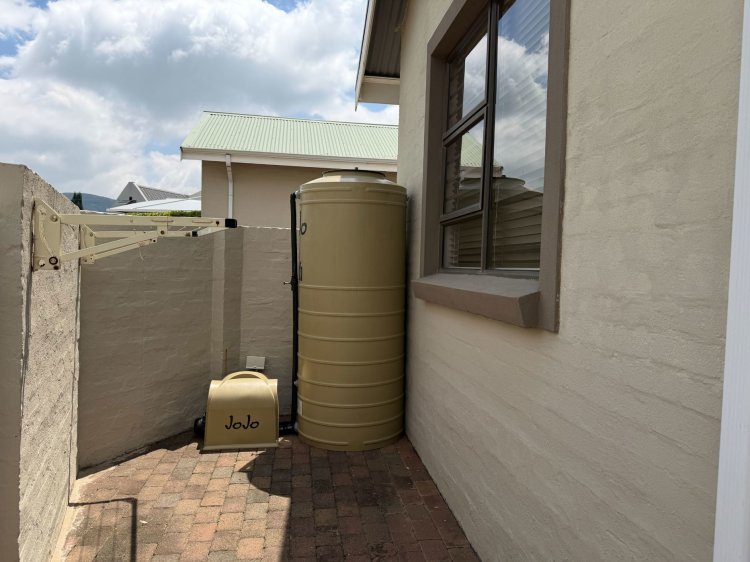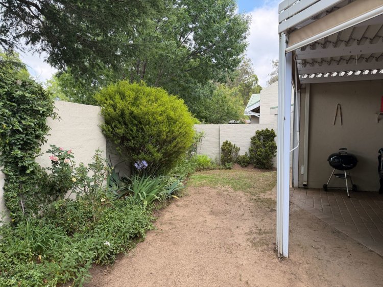 Outdoor living is a highlight of this home. The front patio enjoys sun throughout the day and offers a pleasant spot to relax and watch the town go by. At the back, the garden patio is fitted with Luxaflex awnings, creating a sheltered and private space that works perfectly for braais and entertaining with friends or family.