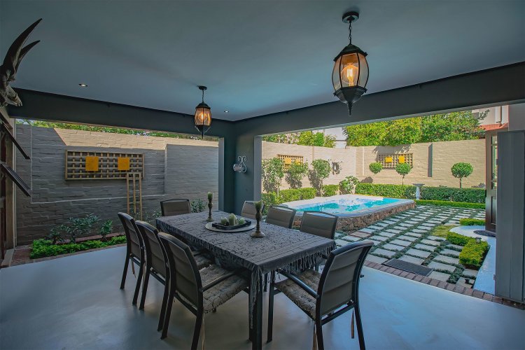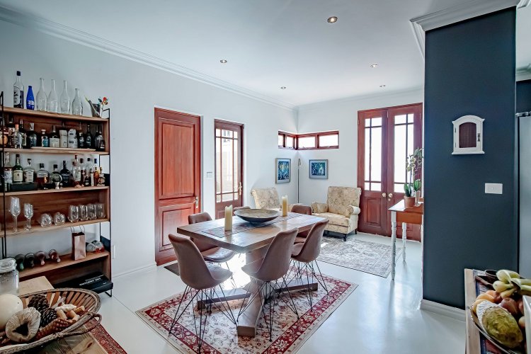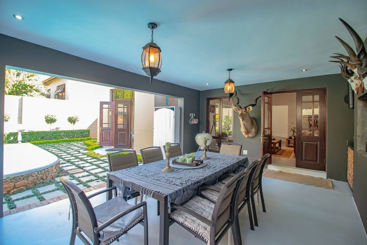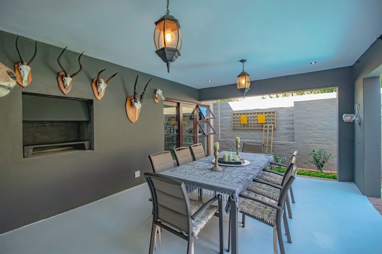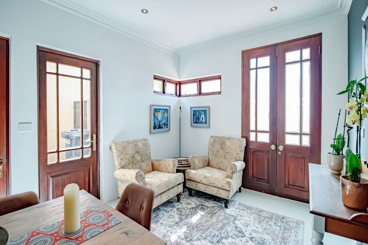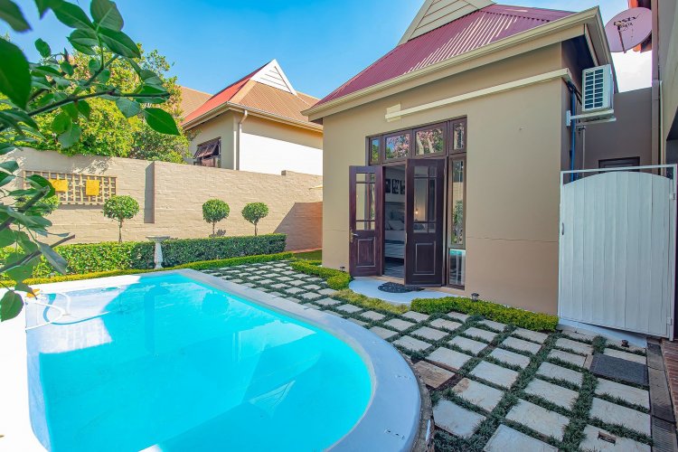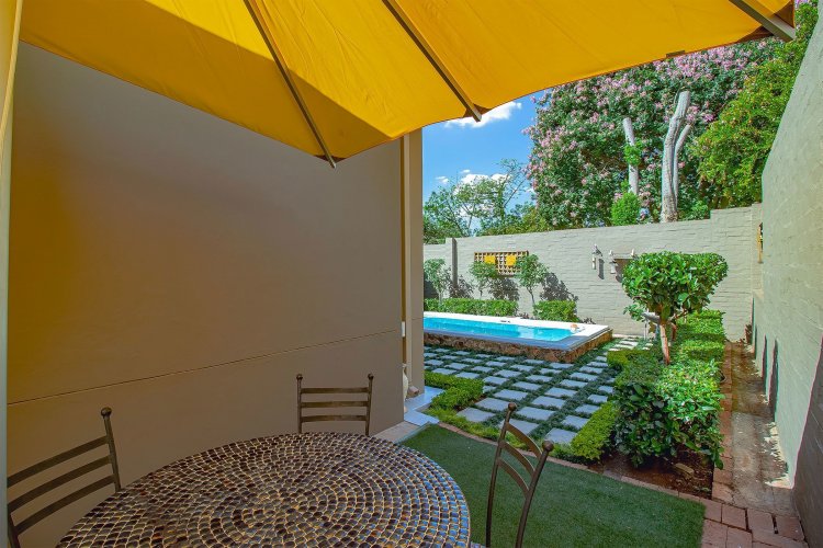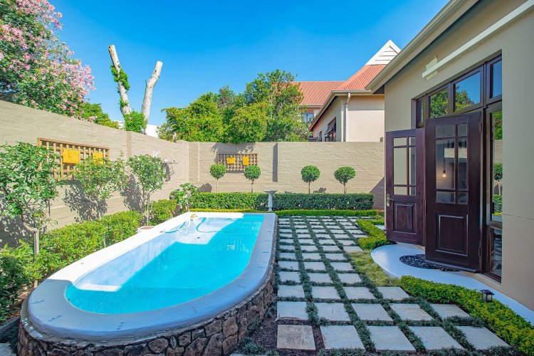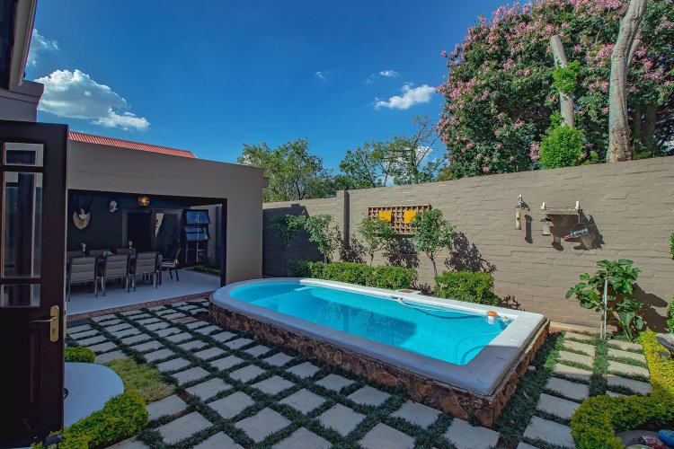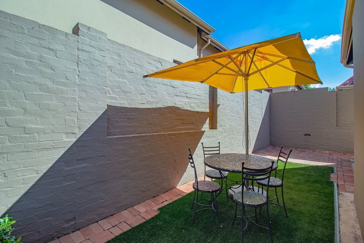 There are homes… and then there are homes that quietly steal your heart. Tucked into a prized corner stand within the storybook surrounds of Heritage Hill Estate — that beloved village within the city — this enchanting three-bedroom residence offers something increasingly rare: space, sunlight, and a soul of its own. Freshly and meticulously painted, and presented in truly exceptional condition, the home feels composed and graceful, as though it has been lovingly prepared for its next chapter. Soft flooring in elegant tones of grey and white catches the light beautifully, while newly refined cabinetry and an epoxy floor finish add a contemporary polish without losing warmth. The curtains, thoughtfully selected and included in the sale, frame each room with softness and sophistication. There is an ease to the way this home lives. The dining area lends itself to unhurried evenings and lingering conversation. The kitchen, refreshed and beautifully practical with generous cupboards and a pantry, is both functional and inviting — the kind of space where everyday rituals become meaningful. A combustion stove with chimney adds an irresistible winter romance, its presence promising warmth and atmosphere when the evenings grow cool. And then the home opens outward. An extended covered patio — far more generous than most — becomes an outdoor salon beneath open skies. With its built-in braai, it invites long summer lunches, candlelit dinners, and slow Sunday mornings. Beyond, the garden unfolds like a private sanctuary, complete with a newly painted swimming pool, bubble blanket, new pump, and automatic cleaner — ready for laughter, real swims, and sun-drenched afternoons. Downstairs, the main suite rests quietly against the garden, with doors that allow birdsong and soft breezes to drift inside. Upstairs, two beautifully proportioned bedrooms share a spacious full bathroom, while one enjoys the romance of a Juliet balcony — a charming perch for morning light and evening air. Two new Samsung air conditioners ensure comfort in every season. Practicality has not been overlooked. An extensive solar system supports effortless living. The double garage doors have been recently serviced. A central vacuum system enhances daily ease. Every detail speaks of care, investment, and thoughtful maintenance. As a freestanding corner unit, the sense of space is palpable. There is privacy. There is light. There is breathing room. And then there is the setting. Life in Heritage Hill Estate is unlike anywhere else. With its heritage-inspired architecture, tree-lined avenues, manicured parks, tennis courts, swimming pools, and welcoming clubhouse, the estate carries a whimsical, almost European charm. It feels refined, established, and quietly prestigious — a place where children ride bicycles under oak trees and neighbours still greet one another by name. This is not simply a townhouse. It is a home with grace. A home with warmth. A home waiting for its next love story.