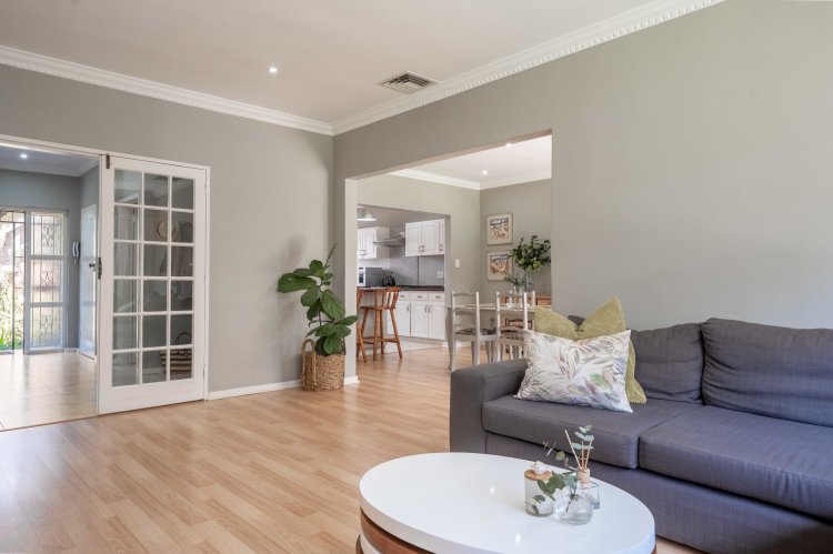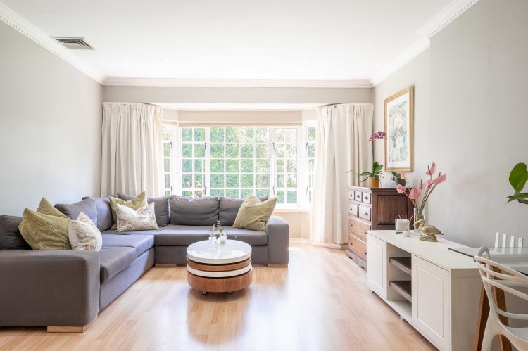 Step inside to light filled, open plan living areas that flow effortlessly from one to the other and into a small sun lounge — the ideal spot for morning coffee or afternoon relaxation. This versatile space can be kept private or opened to create a seamless indoor-outdoor connection to the garden. You'll be spoilt by the tranquil views over the rolling lawns of the common gardens, the perfect space for children to play or for quiet evening strolls.