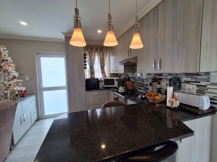 This home, with a lovely view of the Nahoon Valley from the front garden and braai area, is in excellent condition. The unit is accessed through a remote controlled complex access gate with parking for visitors. It has floor tiles throughout, 3 bedrooms, 2 bathrooms (one an en-suite), an open plan lounge/dining room and kitchen with granite tops and a gas stove/electric oven. The single garage has a glass and aluminium sliding door at the back and this gives access to the small back yard. The solar geyser, alarm with passives in the roof, 2500L water tank and pump (for the garden), prepaid electricity, sattelite dish and galvanised security doors add extra value to the modern finishes inside the home.