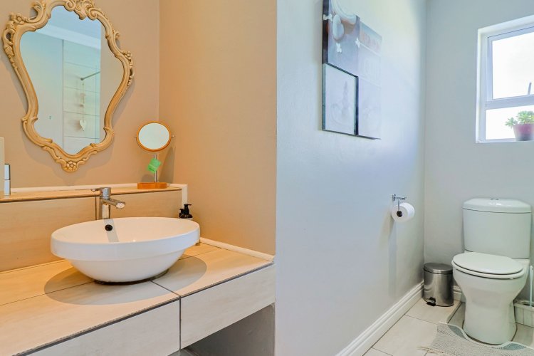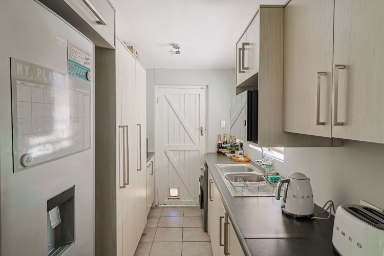 On the ground floor is a small flatlet with a separate entrance, one en-suite bedroom, a small kitchen, and a lounge area - ideal for Airbnb or guests. There are also 4 garages, enough storage space, and off-street parking for another 3 cars. Sliding security gate and fully walled.