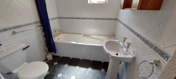 The home is completed by three bedrooms and two bathrooms, providing comfortable family accommodation. Additional features include a four-car garage with laundry facilities, as well as domestic quarters.