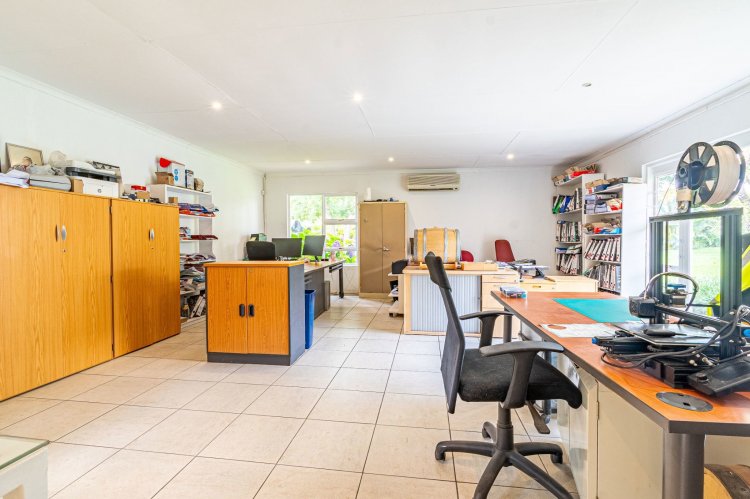 An external bathroom is available for day staff. Garaging is exceptional, with a double garage including additional storerooms and a separate extra-height garage capable of housing up to four vehicles, along with ample additional parking. A further storeroom is located at the rear of one garage.