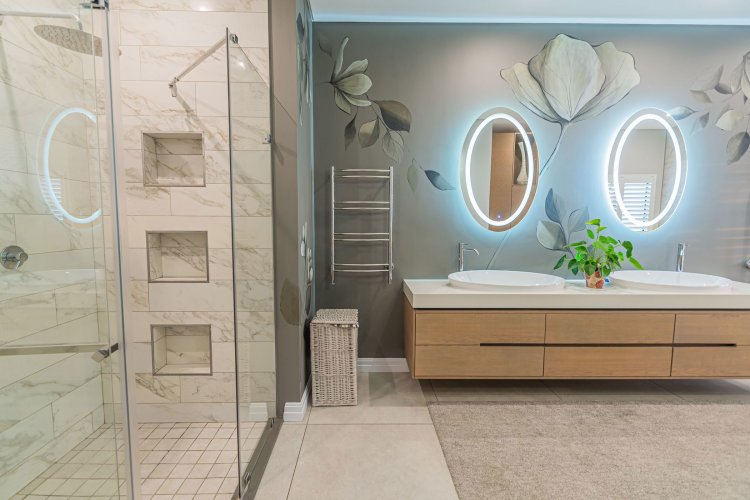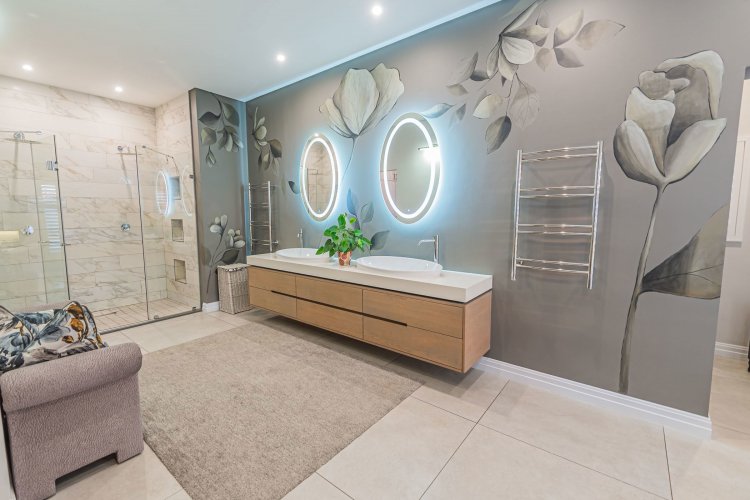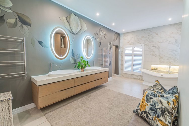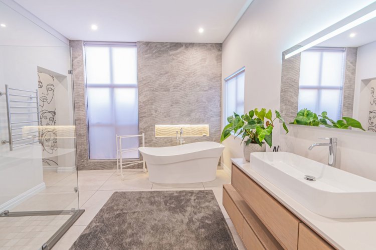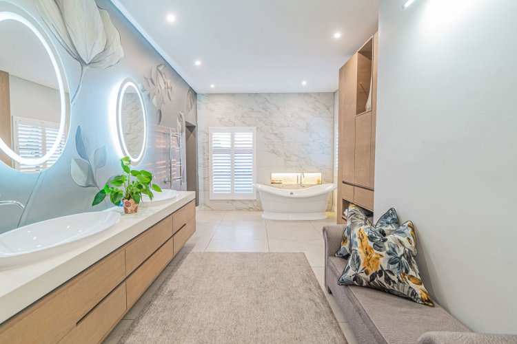The bathrooms have high ceilings with top-end finishes and are open-plan and modern.