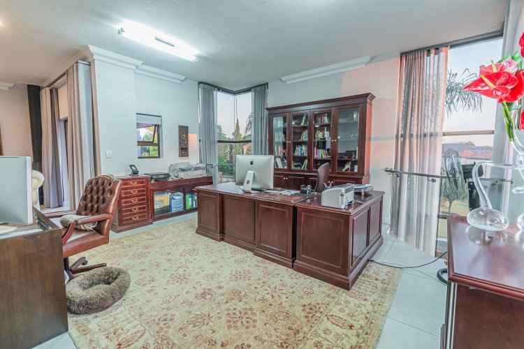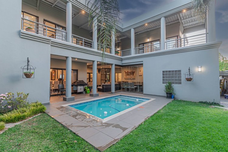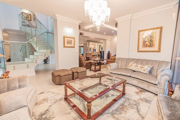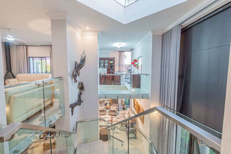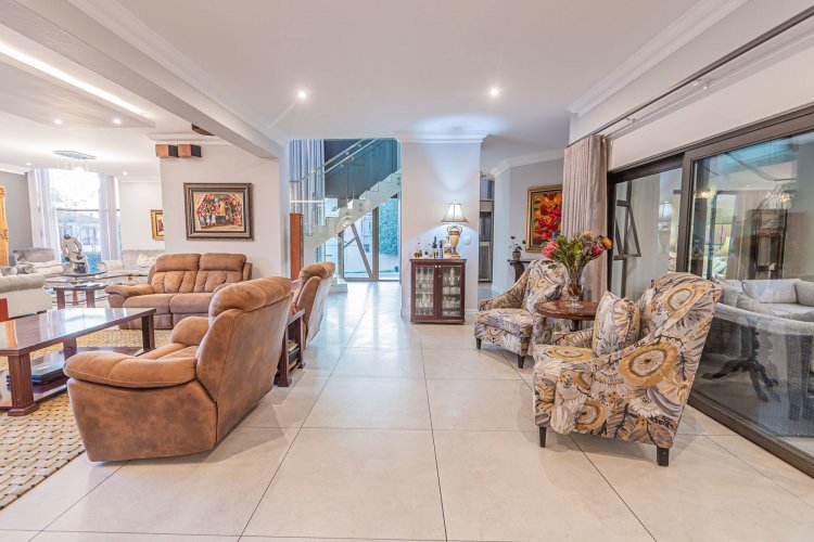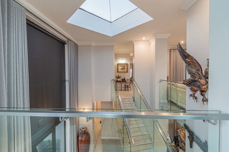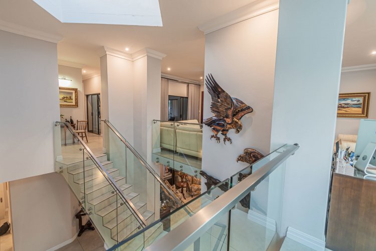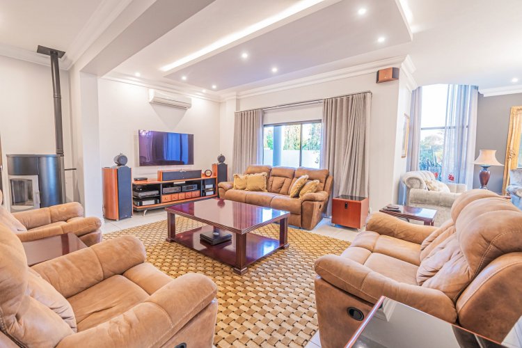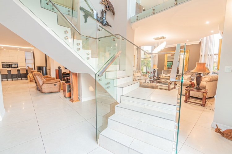 Special features: * Wheel-chair lift * Down-stairs bedroom with bathroom adjacent * Patio with braai area, overlooking the pool with garden * Pool has a heat pump * Balconies * American shutters in the main bedroom * Aircons * Classy state of the art kitchen, modern and big with high ceilings * Scullery * Laundry area upstairs * 5 Luxury living areas * Double garage, extra height, automatic doors * Third parking area for a car or Golf cart * Caravan parking area * Beautiful glass staircase * High ceilings, double volume * Modern bathrooms, a must see * Solar panels * Sky-lights * Aluminium windows and sliding doors * Staff accommodation * Automatic irrigation * 2 Solar Geysers, 200l and 150l * Wood burner * Underfloor heating in the main bedroom and entrance to the home