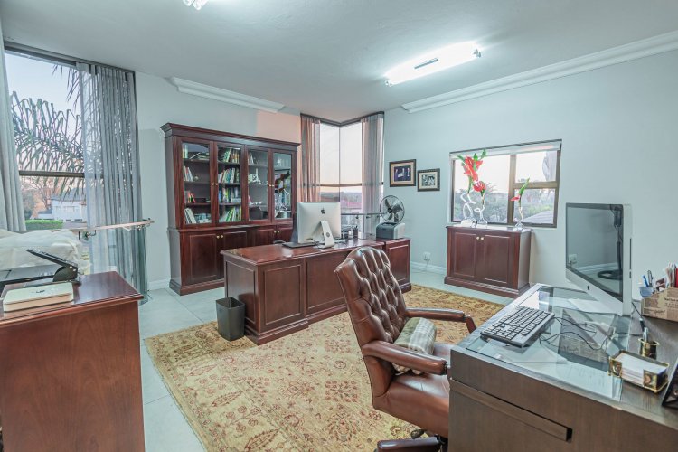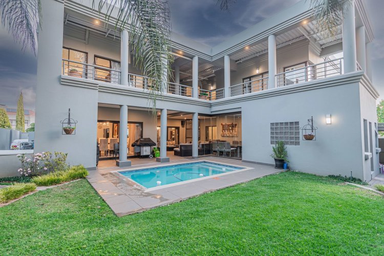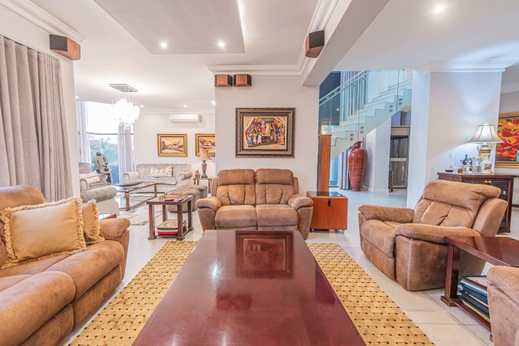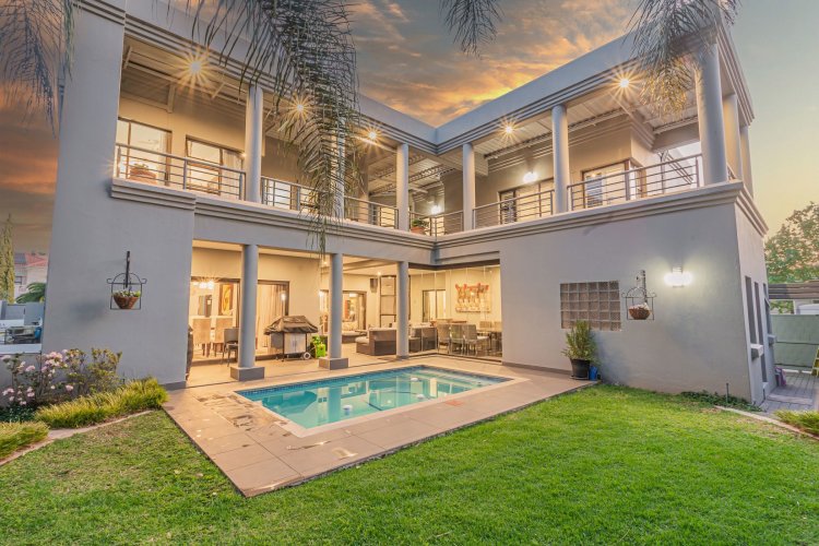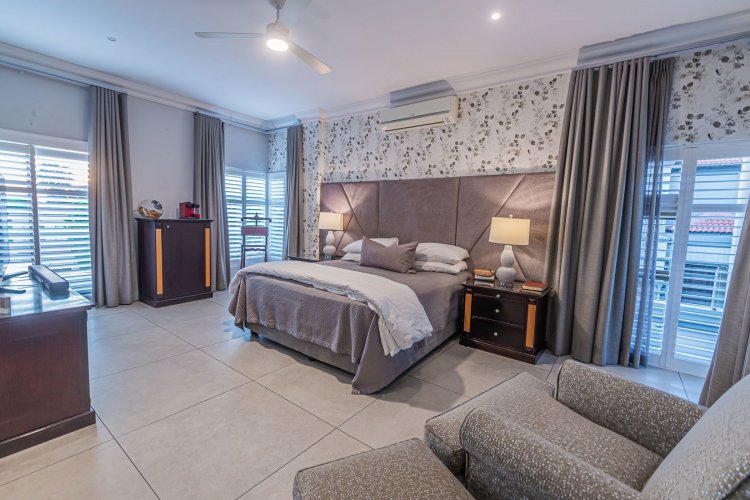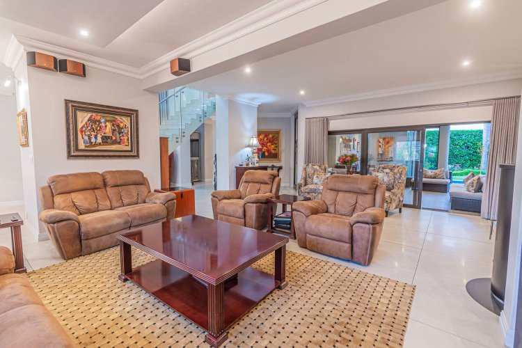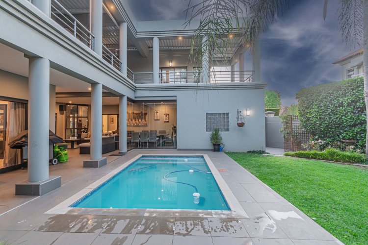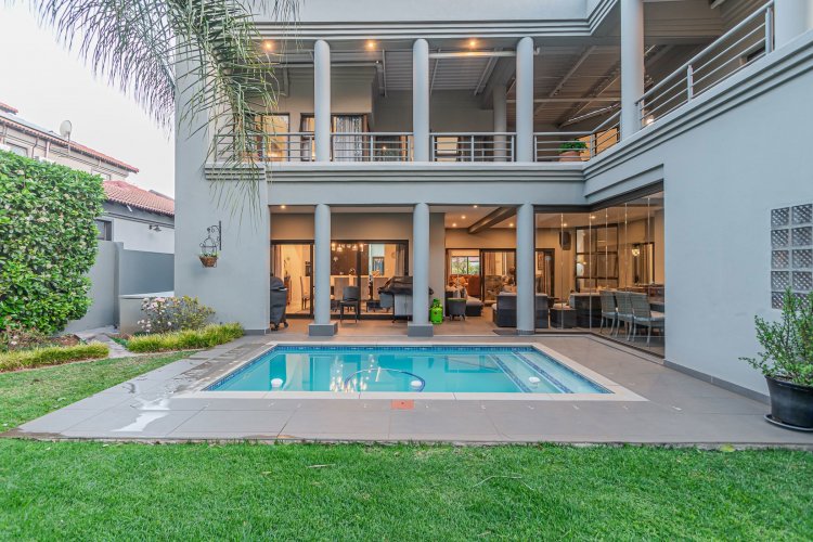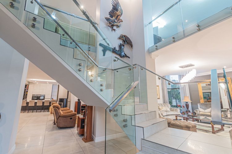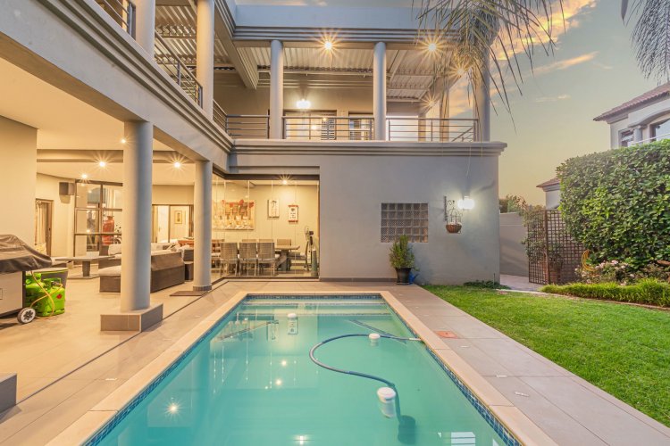 Special features: * Wheel-chair lift * Down-stairs bedroom with bathroom adjacent * Patio with braai area, overlooking the pool with garden * Pool has a heat pump * Balconies * American shutters in the main bedroom * Aircons * Classy state of the art kitchen, modern and big with high ceilings * Scullery * Laundry area upstairs * 5 Luxury living areas * Double garage, extra height, automatic doors * Third parking area for a car or Golf cart * Caravan parking area * Beautiful glass staircase * High ceilings, double volume * Modern bathrooms, a must see * Solar panels * Sky-lights * Aluminium windows and sliding doors * Staff accommodation * Automatic irrigation * 2 Solar Geysers, 200l and 150l * Wood burner * Underfloor heating in the main bedroom and entrance to the home