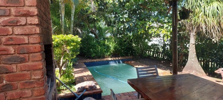 Additional conveniences include a solar geyser for energy efficiency and water tanks that support a more sustainable lifestyle. For those looking to expand or secure extra space, the empty fenced and cleared plot next door is also available for purchase.