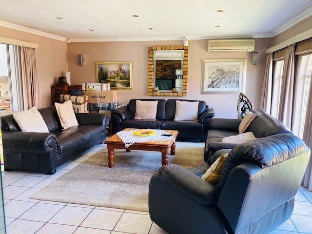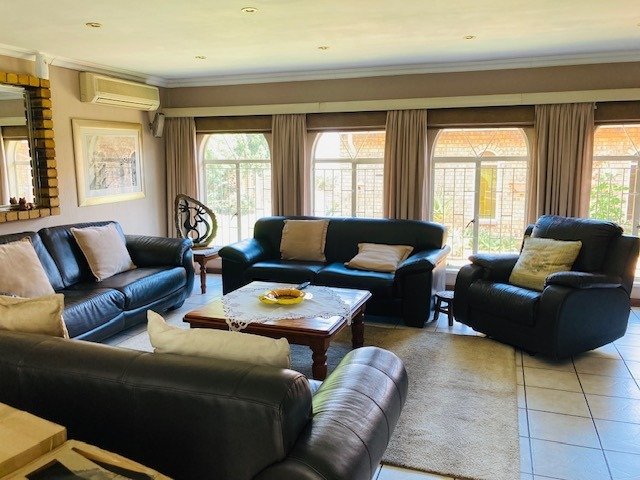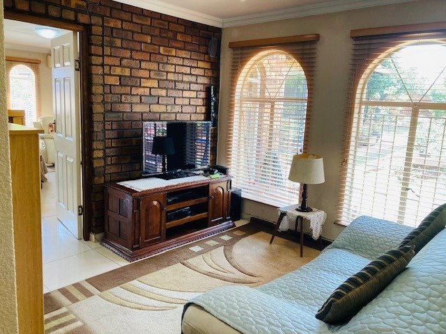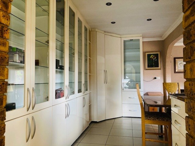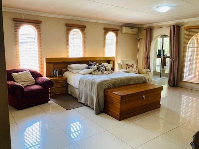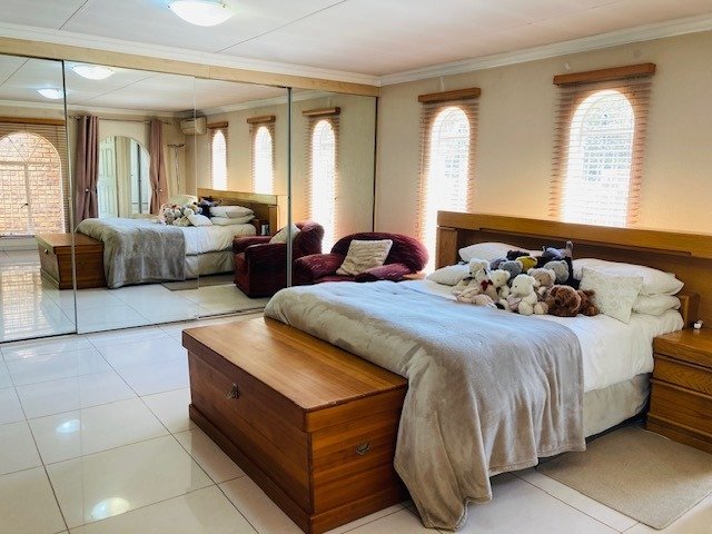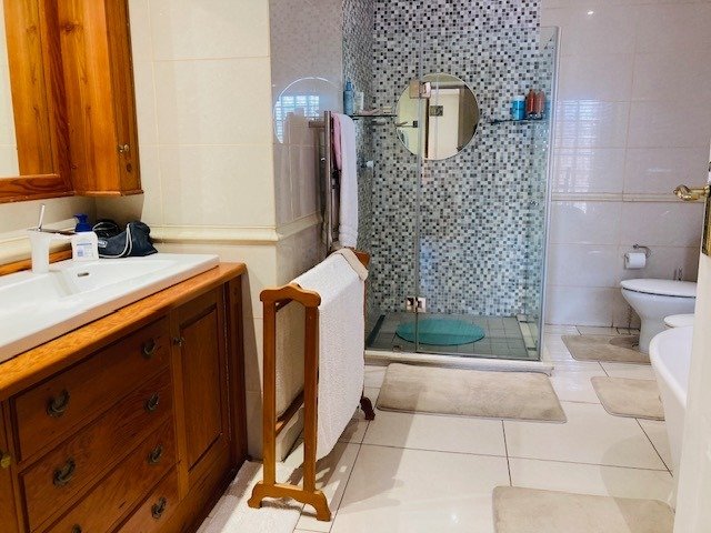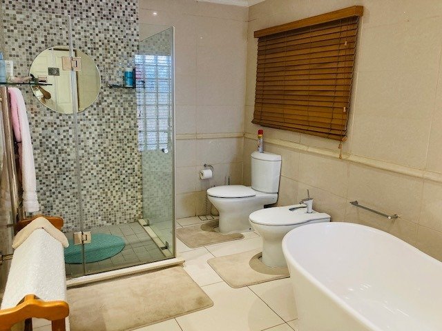 4 Bedrooms all fitted with built in closets. The 3 bathrooms features, bath, basin and toilet, while the fourth is an en-suite to the main bedroom, also has an office with a storage of files. En-suite has a shower, basin and toilet. Luxury feature throughout. Other features, pre-paid, generator, alarm, beams, air conditioner, Jojo, garage for 7 cars, automated gate, solar geyser.