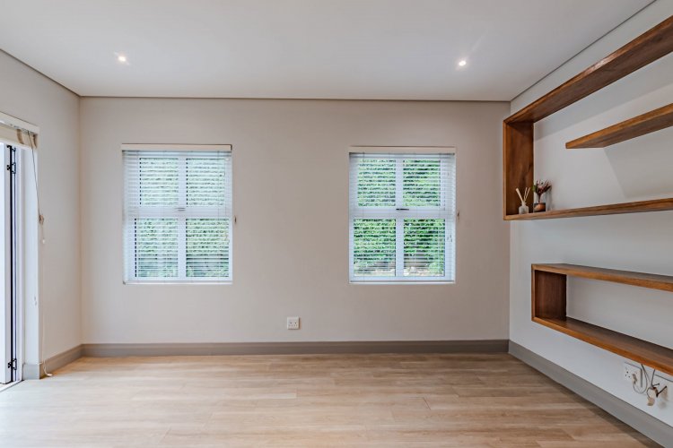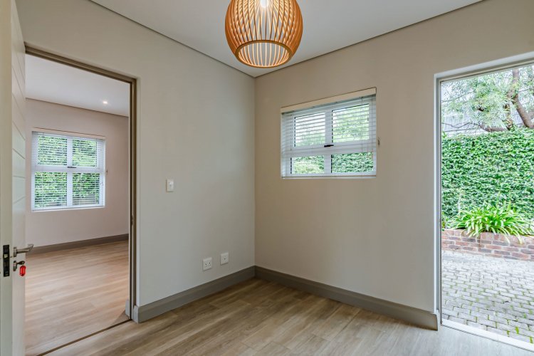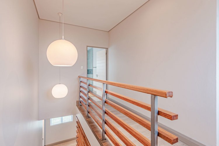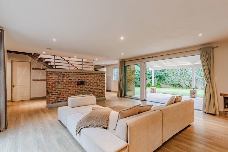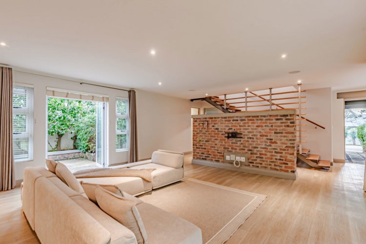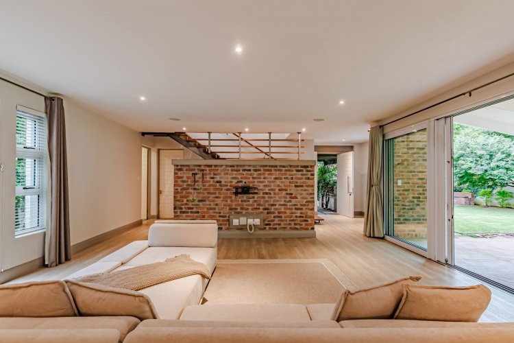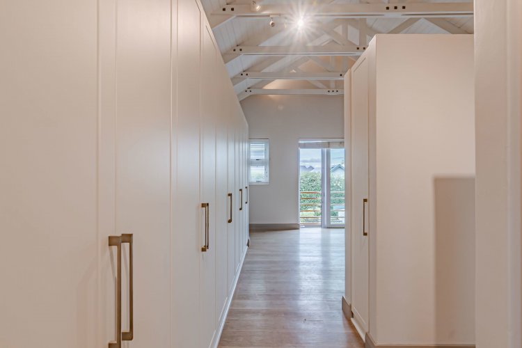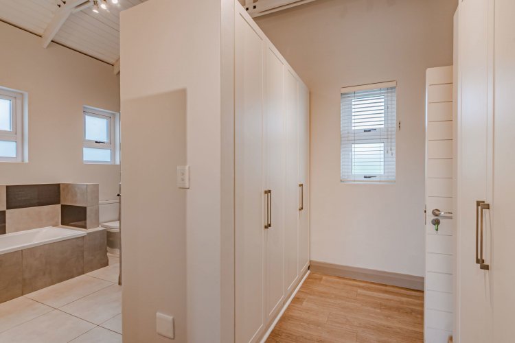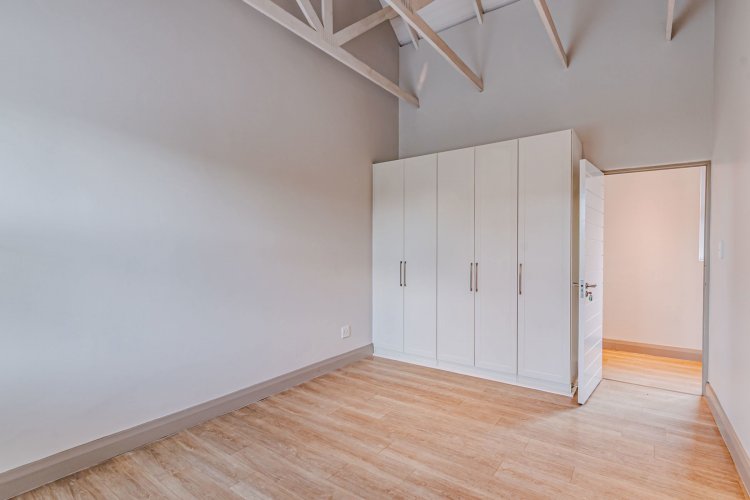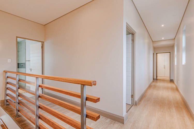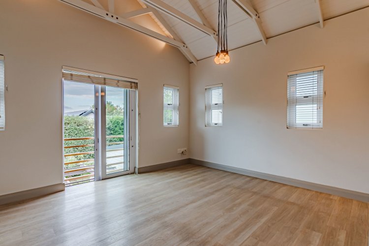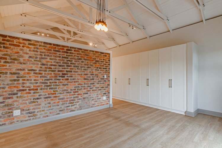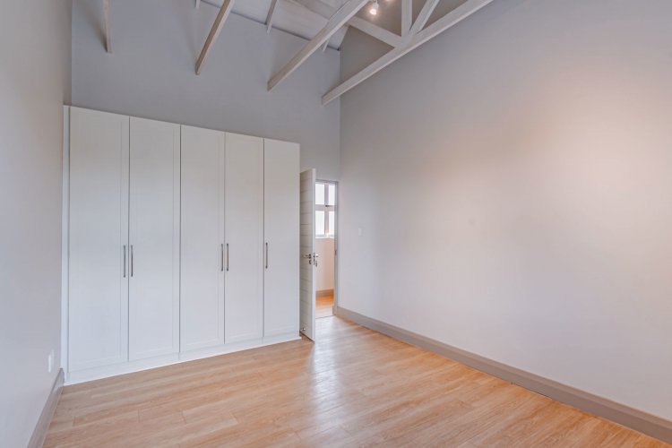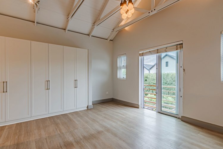 Upstairs, you'll find three generously sized bedrooms, all featuring exposed beams and high ceilings that enhance the sense of space and light. Two bedrooms offer built-in cupboards and share a stylish full bathroom. At the end of the passage, the spacious main bedroom features a full en-suite bathroom, ample built-in cupboards, and a Juliet balcony that overlooks the garden - the perfect spot to enjoy your morning coffee.