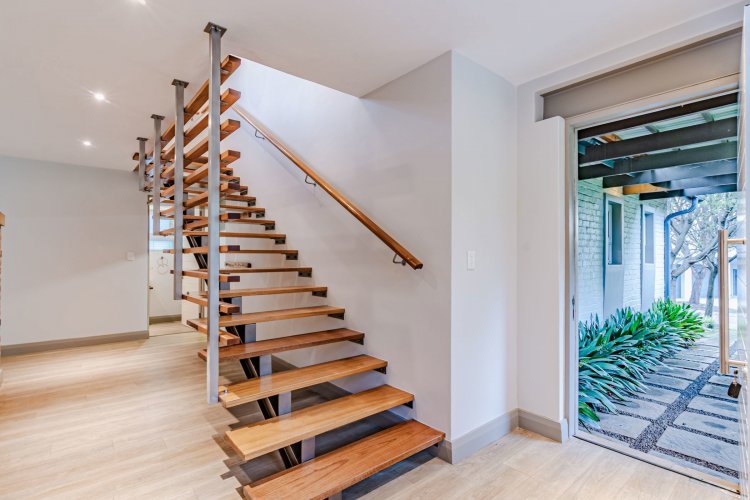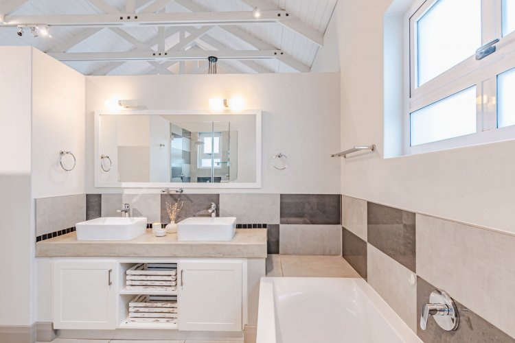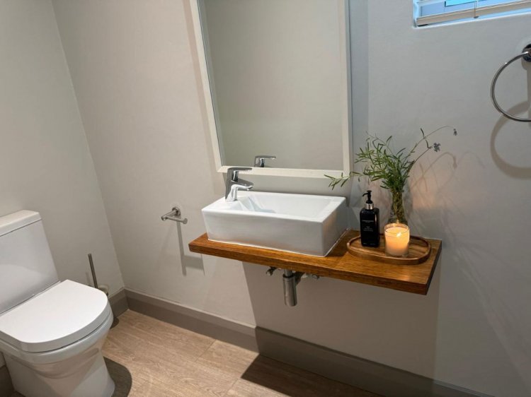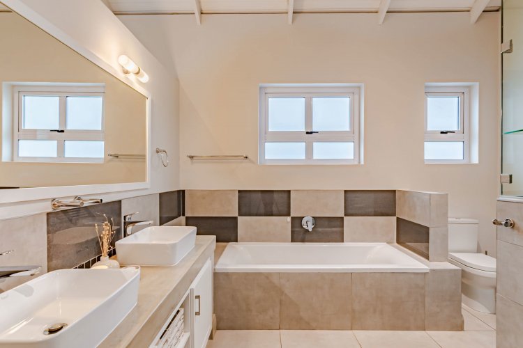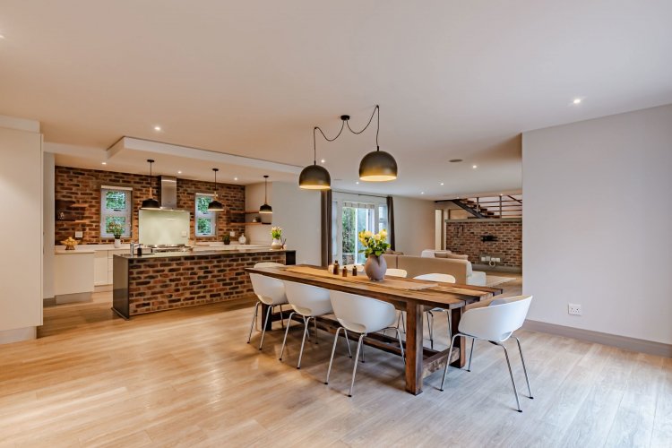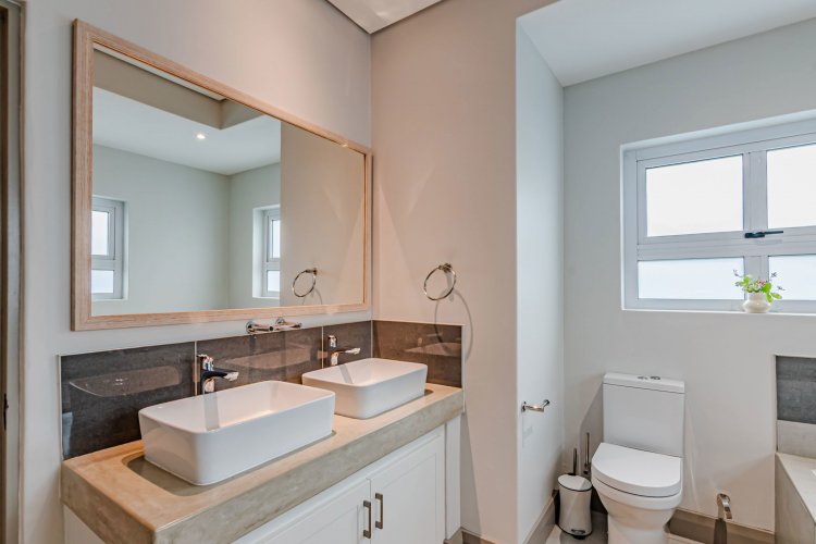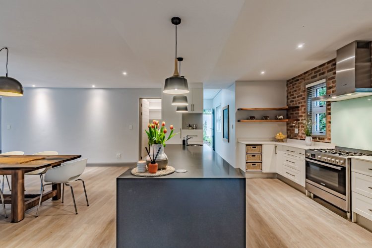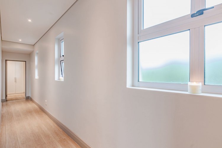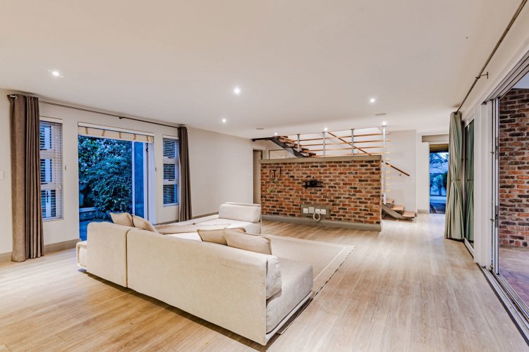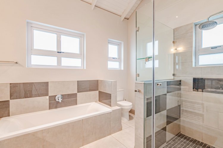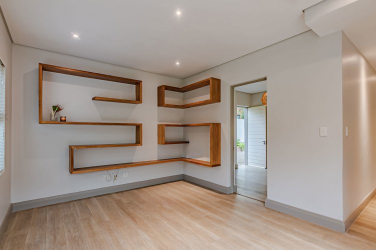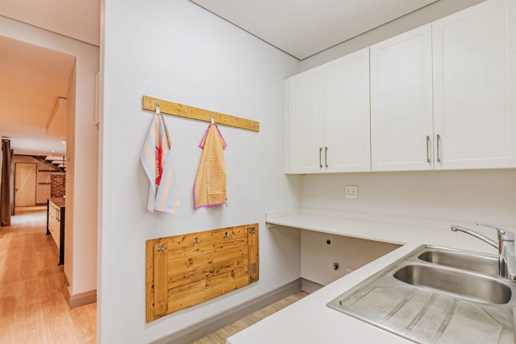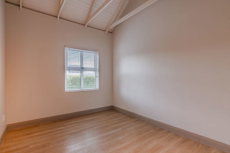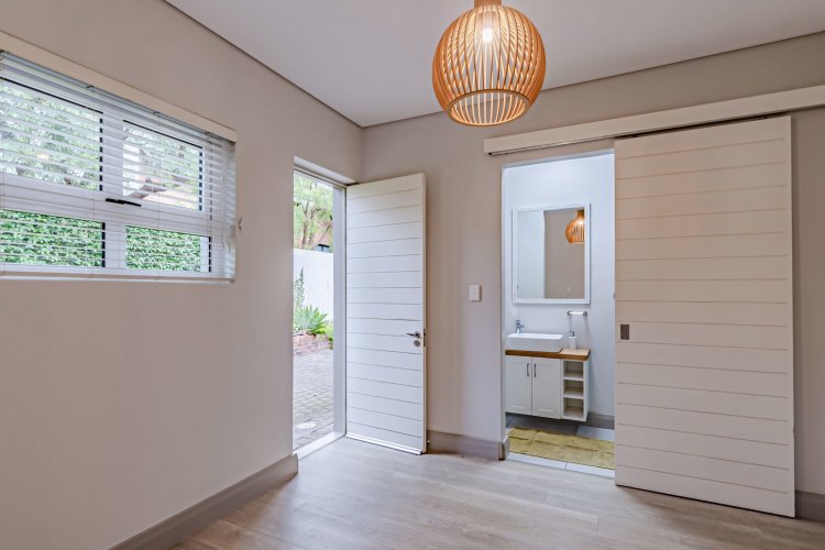 Upstairs, you'll find three generously sized bedrooms, all featuring exposed beams and high ceilings that enhance the sense of space and light. Two bedrooms offer built-in cupboards and share a stylish full bathroom. At the end of the passage, the spacious main bedroom features a full en-suite bathroom, ample built-in cupboards, and a Juliet balcony that overlooks the garden - the perfect spot to enjoy your morning coffee.