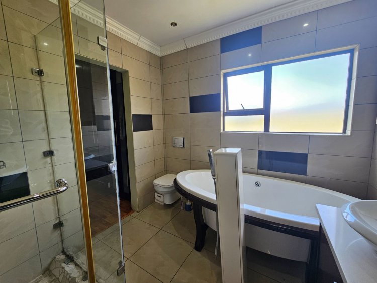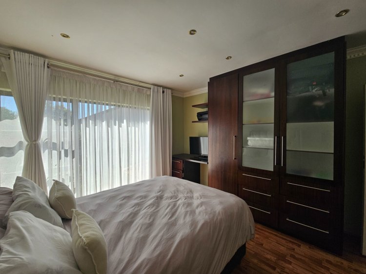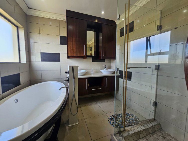 A living lifestyle of peace and tranquility in a world of your own in Thornhill Estate. Close to mall of the North and Virgin Active. Double volume entrance into a double story mansion, four magnificent receptions, fully equipped TV room and a private lounge with separate entrance. All with wonderful designed stairs taking you to a pajama lounge. Five deluxe bedrooms, three en-suite. Fully equipped designer kitchen with a scullery. Highly recommended and well priced. Call today for your viewing appointment.