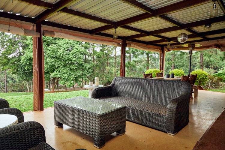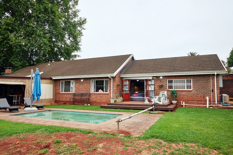 The home’s light-filled living areas flow seamlessly from a stylish, open-plan kitchen through to elegant dining and lounge spaces that open onto a covered patio overlooking the manicured garden and sparkling pool. Four spacious bedrooms inside the house, three bathrooms (including a luxurious main en-suite), and a private flatlet.