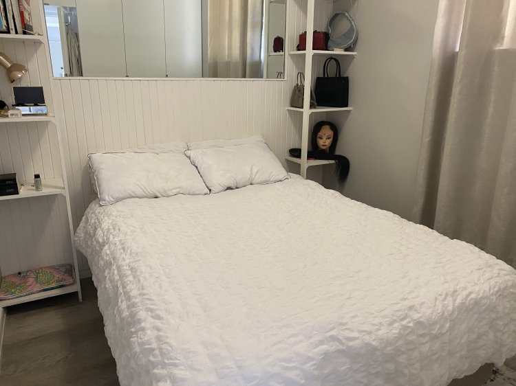 The apartment offers an open plan layout with a spacious living area and new contemporary kitchen with Ceaserstone countertops, a glass hob, extractor fan and under-counter oven. The modern bathroom boasts a large walk-in shower and high-end finishes. There is a spacious bedroom with built-in cupboards.