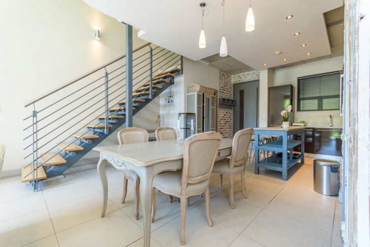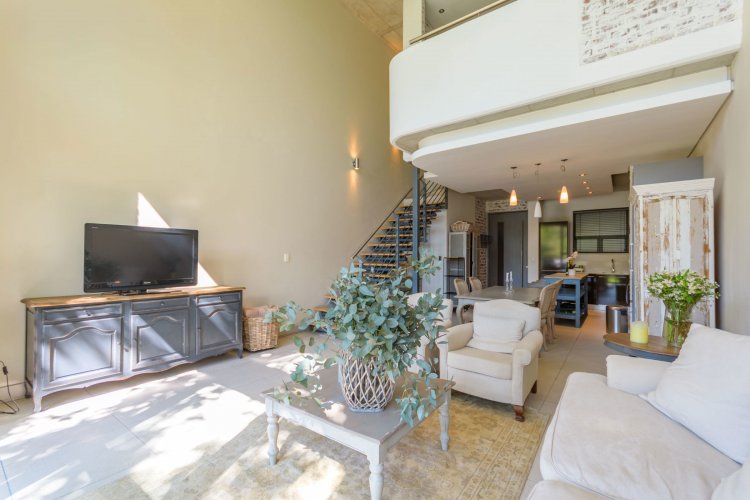 tunning apartment in Melrose Square on Oak. This spacious at 97sqm apartment opens directly onto the beautiful internal treed gardens and residents pool. There are floor to ceiling windows making this a bright and sunny apartment. The loft bedroom is spacious with a full en-suite bathroom. There is a guest bathroom downstairs. The kitchen is fully integrated with a washing machine and dishwasher. The patio offers a gas braai for entertaining as well as 2 Basement parking bays.