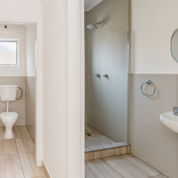 6 neat outside rooms, each with its own toilet and shower — all tiled, ideal for rental income.