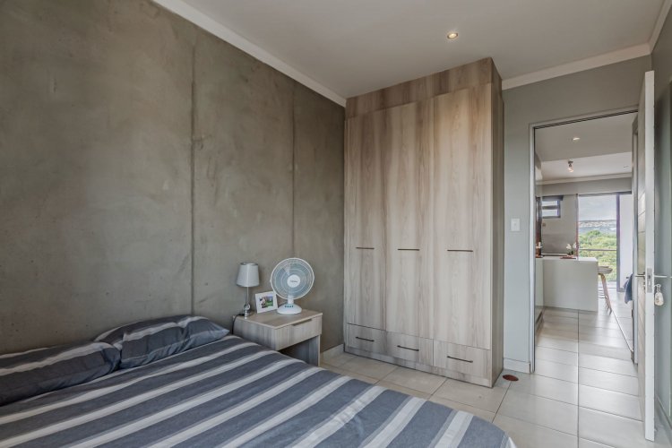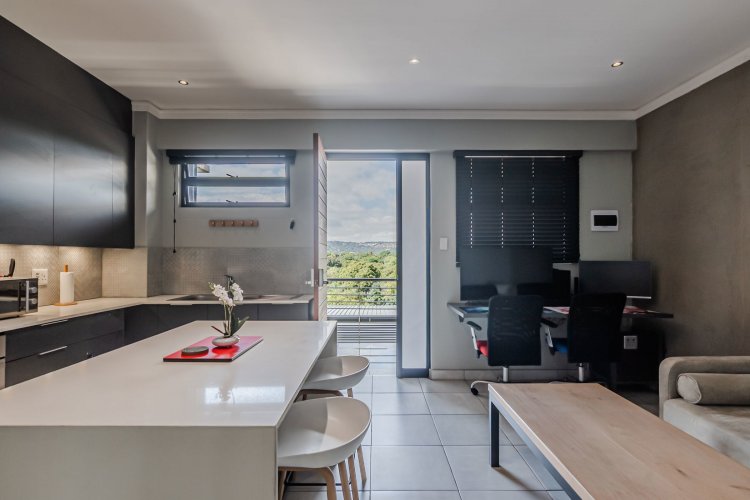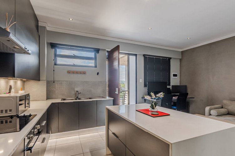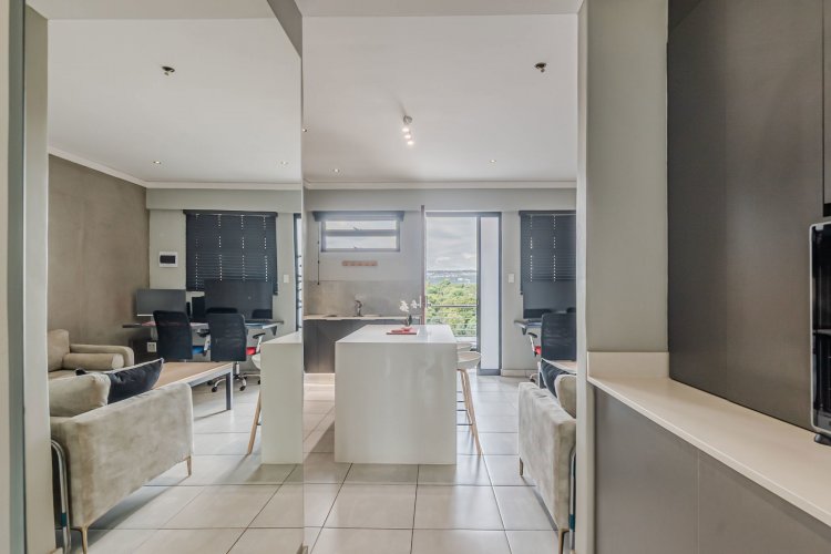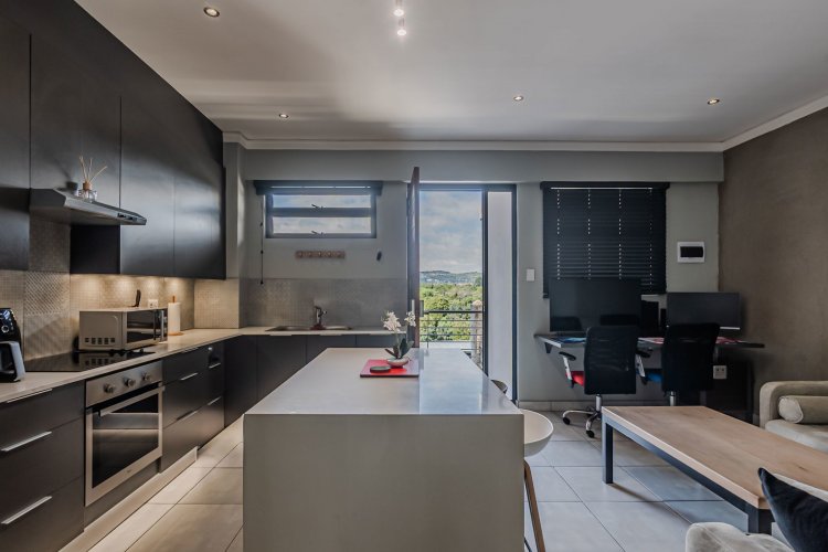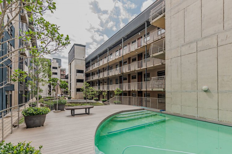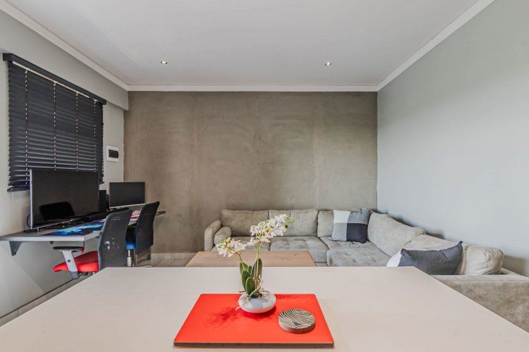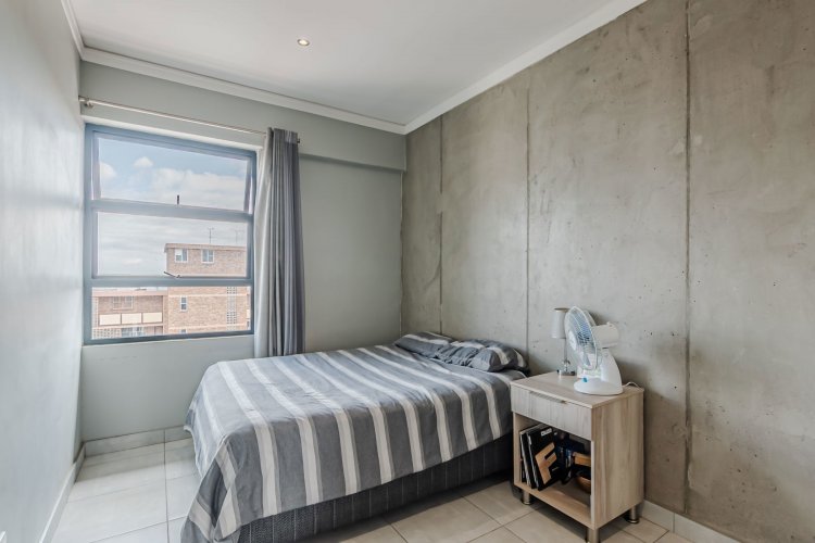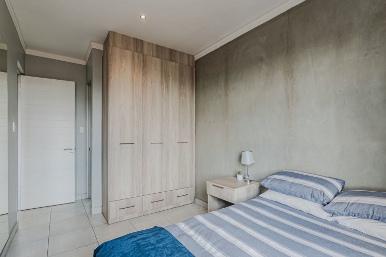 Featuring finger print access and ultra modern smartphone/ID security, this super modern lock up and go apartment is less than a kilometer to university of Pretoria, and just over a kilometer from Tuks university. Aside from the gym, laundromat, cafe and pool within the complex, it is also located close to all necessary amenities. Sleek open plan kitchen and living room at entrance. Kitchen features Caesarstone tops and breakfast bar at nice large center island, modern cupboards, space for 3 appliances with oven, hob and extractor fan. Bedroom one features bathroom en-suite, bedroom 2 directly next to bathroom 2. Both bedrooms feature built in cupboards, and attractive screeded concrete finish with large fitted mirrors.