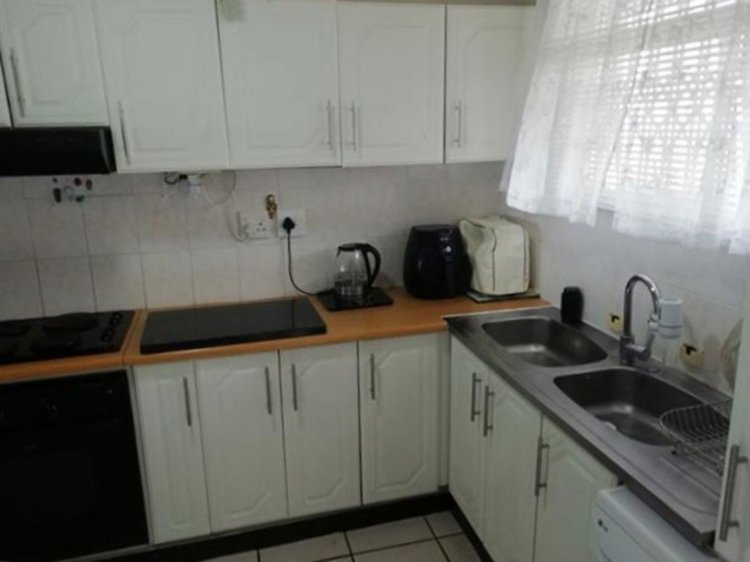 KEY FEATURES: One Bathroom with newly renovated shower and separate guest toilet Combined lounge and dining room with open balcony. Modern open plan kitchen with oven, hob and extractor fan. Plumbed for washing machine. Both bedrooms feature combined light fittings with fans. One lockup garage. Electronic gate access and CCTV cameras system. Laundry facilities on premise.