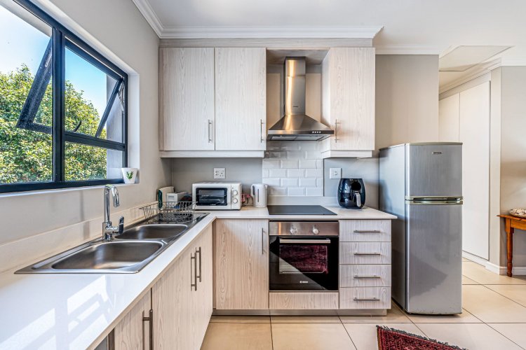 The primary bedroom has its own sleek en-suite shower, while the second bathroom invites you to slow down with a deep, beautiful bathtub made for long soaks. At the heart of the home, the crisp, contemporary kitchen—complete with a built-in extractor— offering both dishwasher and washing machine options and melds seamlessly into a sunny living area, creating a bright and social atmosphere.