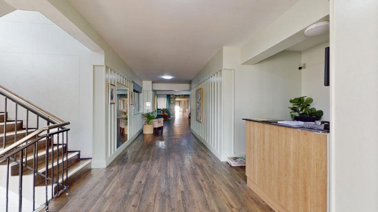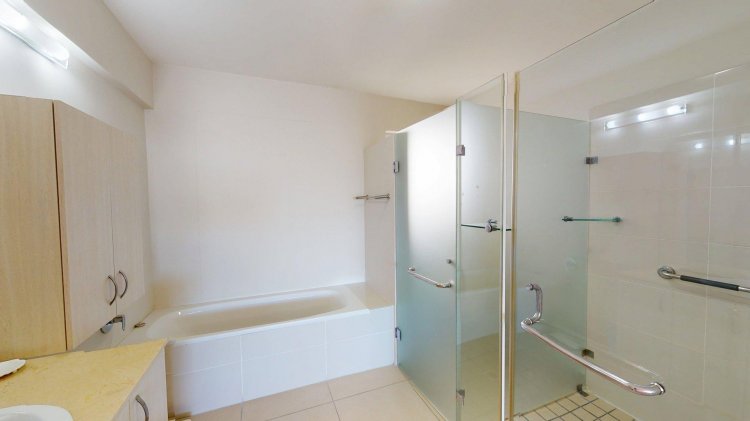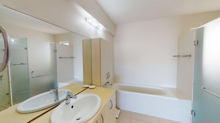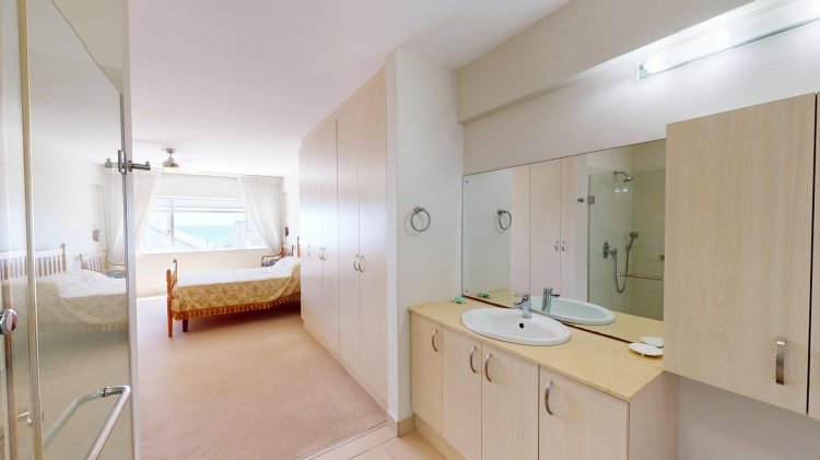 There are 2 lovely bedrooms with built-in cupboards, both offering en-suite wheelchair friendly, renovated shower bathrooms and vanity basins.