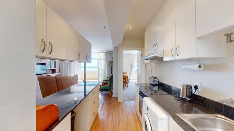 This spacious, renovated apartment is modern in design and layout, front facing with views of the sea and in pristine condition just waiting for new occupants to live in and enjoy. Step inside and fall in love with this north facing, sunny apartment offering welcoming entrance hall to open plan lounge and dining area with vinyl floors and blinds which are fully fitted. The open balcony offers sea views and a breath of fresh air too. Modern open plan granite fitted kitchen with granite tops and breakfast bar plus undercounter oven and hob. The kitchen is well equipped with a dishwasher and washing machine space, it truly is the heart of the home.
