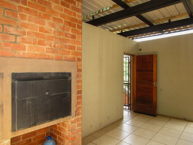 The unit offers open-plan living spaces designed for comfortable everyday living. The modern kitchen is fitted with cherry wood cupboards and offers ample space for all appliances. The lounge extends to a private balcony complete with a built-in braai, ideal for relaxed entertaining or unwinding after a long day.