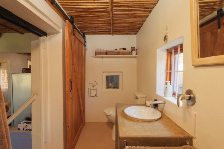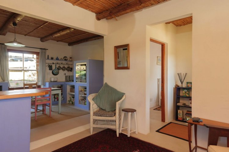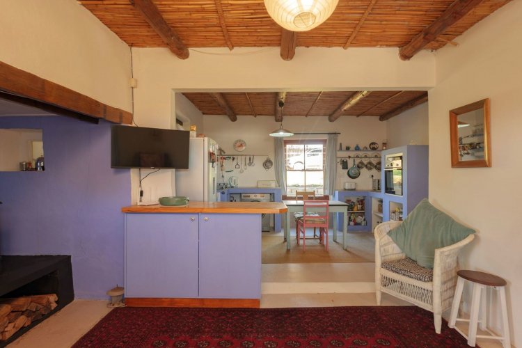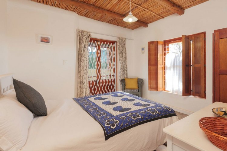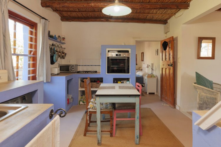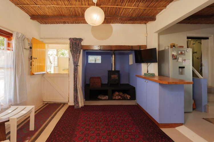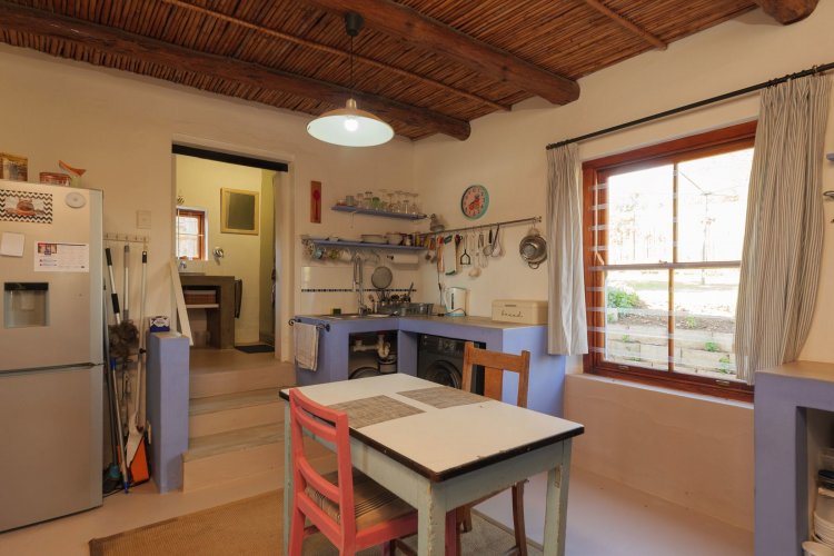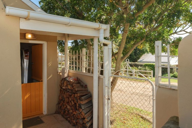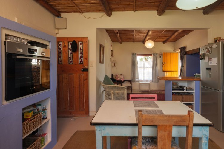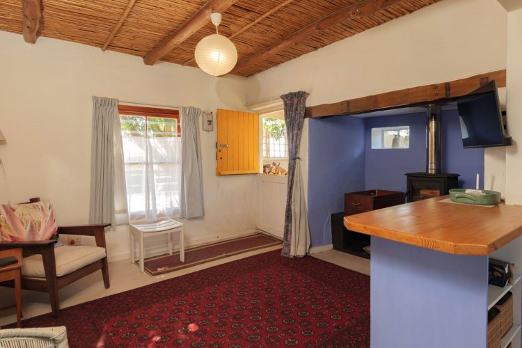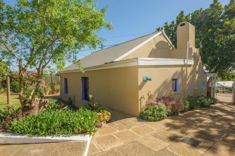 EXCLUSIVE SOLE MANDATE Delightful cottage dating back to 1897, gracefully refurbished, yet retaining its rustic charm, with a harmonious blend of the old features with modern convenience. Access is afforded via an entrance hall to both the lounge/kitchen on the left and a bedroom on the right. The open-plan lounge offers a cosy & comfortable seating area, complemented by an attractive alcove with wood-burning stove, neatly tucked in along one wall, attractive sash window for light & sun, light screeded floors & rustic reed ceilings. The lounge flows seamlessly into the kitchen which also boasts a large, wooden window, adding to the sense of light and airiness. Again, one is struck by the contrast between the rich tones of the reed ceiling, the light floors and the colourfully painted, built-in storage spaces. On offer is a four-plate gas hob & eye level oven, breakfast table & chairs and centre island separating the kitchen from the lounge. Two generous bedrooms & one bathroom complete the accommodation. Both bedrooms sport tasteful sash windows, one at the front of the property & the other at the back. They accommodate a large bed, loose cupboards and an added attribute of the front bedroom is that it leads out to a private patio which is neatly paved & wraps around the back of the house, offering access to the very pretty terraced garden sporting colourful bougainvillea along the perimeter of the property. Measuring 573m2 this property offers plenty of space for a vegetable patch as well as a pool. Rounding off this scenic picture is a covered carport, neatly paved, with easy access out to the road. The property is also fully fenced off at the back.
