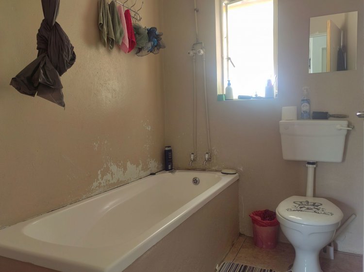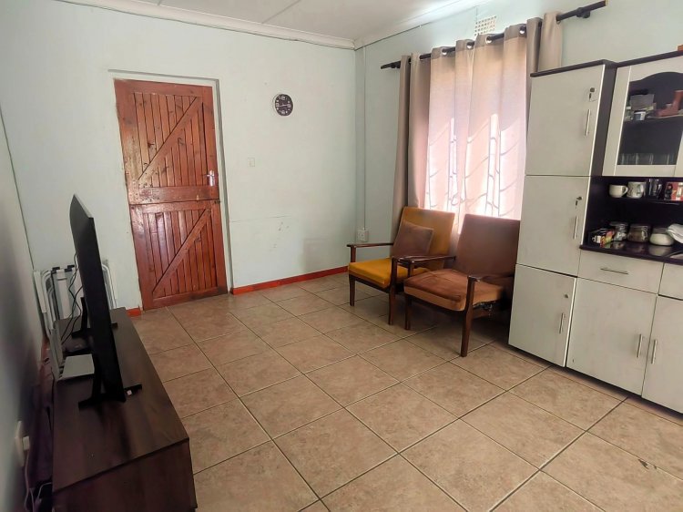 The home features two well-sized bedrooms, a neat bathroom, and an inviting open-plan living and kitchen area that creates a warm and functional space for everyday living. For peace of mind, the property is secured with burglar bars and security gates, ensuring safety and comfort.