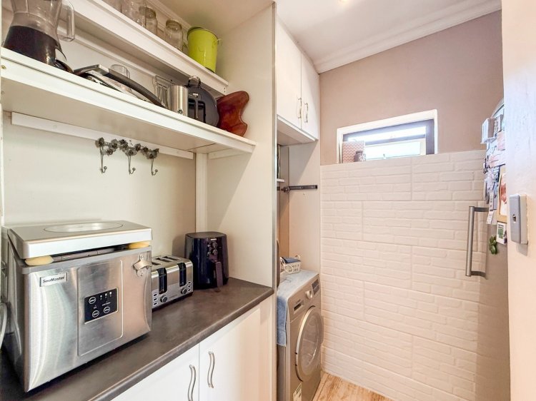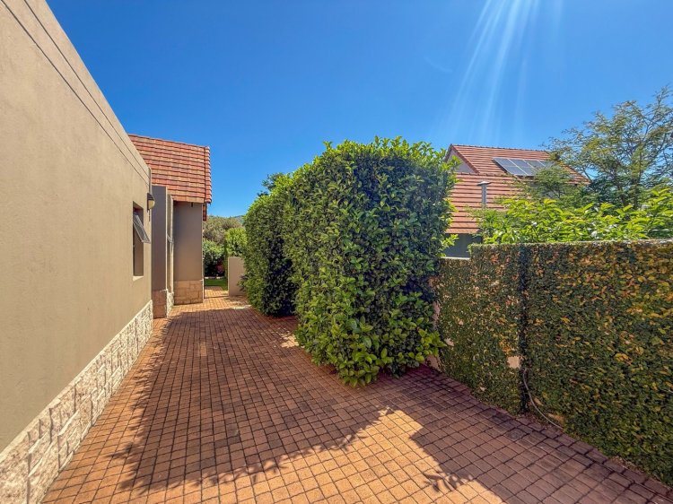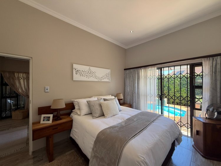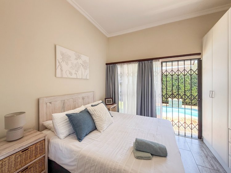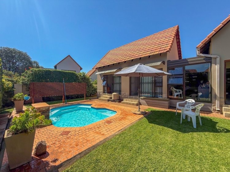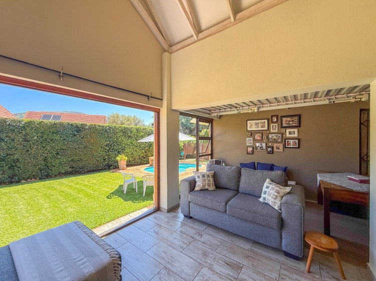 The kitchen stands at the heart of the home and is fitted with granite countertops, a gas hob, and ample storage, making everyday cooking both effortless and enjoyable. The lounge extends effortlessly to an enclosed patio featuring stacking doors, creating a seamless indoor-outdoor flow. Whether you envision easy everyday relaxation or entertaining under the stars, the built-in braai, pool, and tranquil garden backdrop set the scene beautifully. The master bedroom enjoys direct access to the garden and includes a full en-suite bathroom, while the second bedroom—also opening to the outdoors—is serviced by a modern shower bathroom.