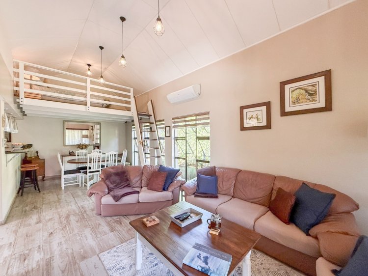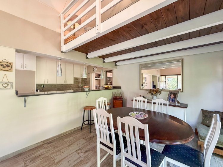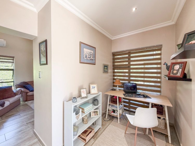 Discover a home that welcomes you from the very first step. This single-level residence in Leloko Lifestyle Estate offers an ideal fusion of comfort, charm, and functional living. The layout is thoughtfully configured, with a dedicated bedroom wing for privacy and an open-plan study ideal for remote work or creative pursuits. The central living area is bright and airy, enhanced by high-volume ceilings and warm finishes. A striking wood loft above the dining area adds a delightful touch—perfect as an extra sleeping corner, cosy reading space, or playful nook for children.